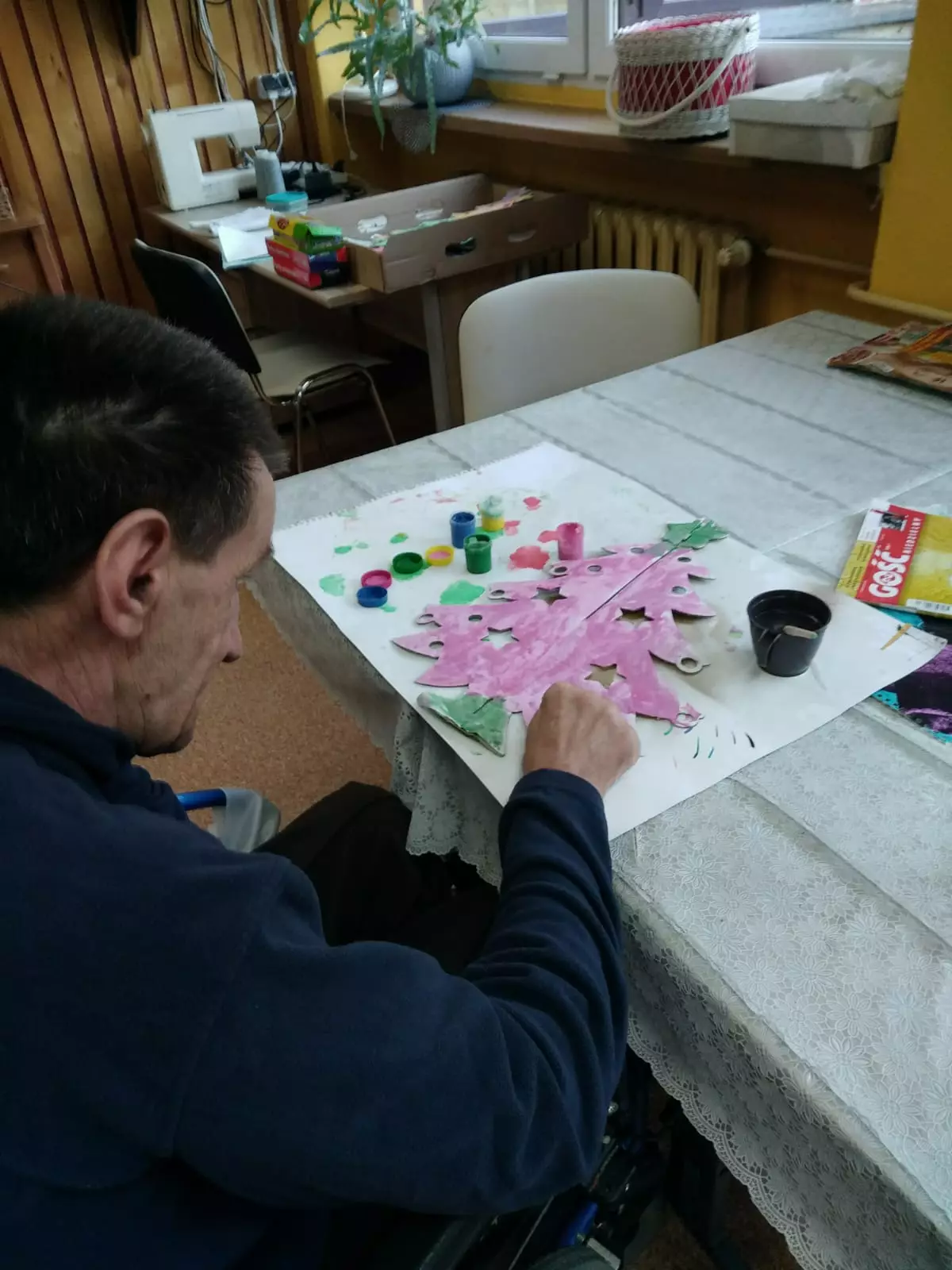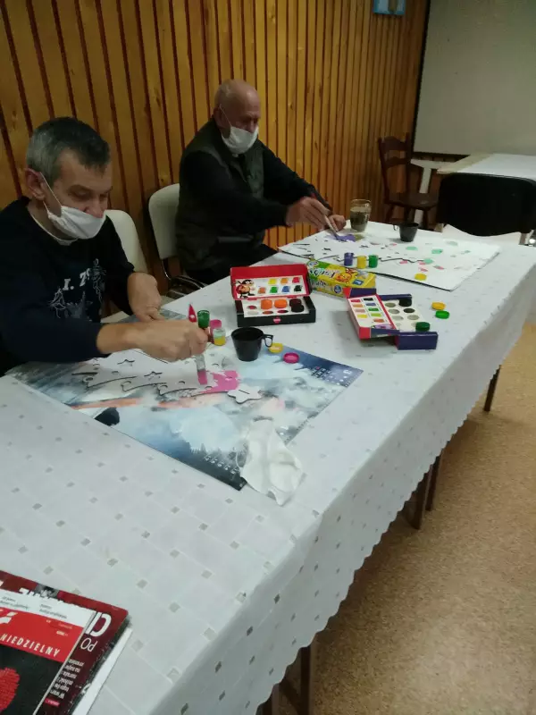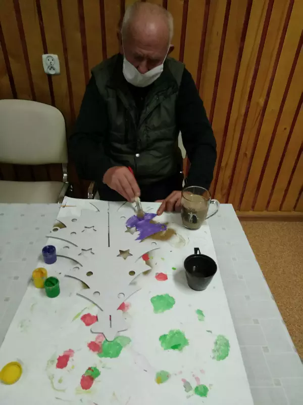 Na terapii zorganizowaliśmy świąteczny konkurs plastyczny ,,Choinka wspomnień”. Świąteczny temat konkursu jest okazją do twórczej zabawy związanej z radosnym oczekiwaniem na Boże Narodzenie. Nasi mieszkańcy zachwycili nas nie tylko wrażliwością ale również motywacją. Wystartowaliśmy z pędzlami farbami i wyobraźnią malując papierowe choinki. Trzeba przyznać, że wszystkie prace zasługują na pierwsze miejsce.