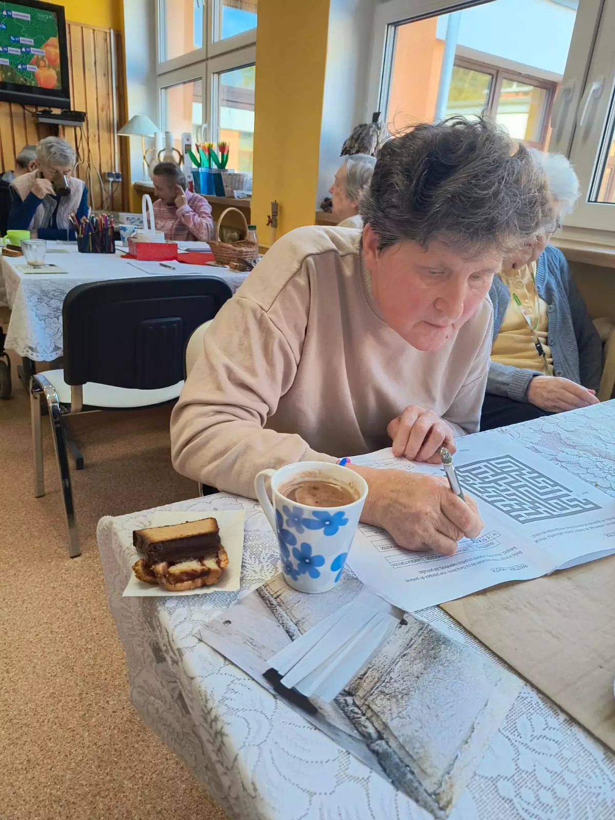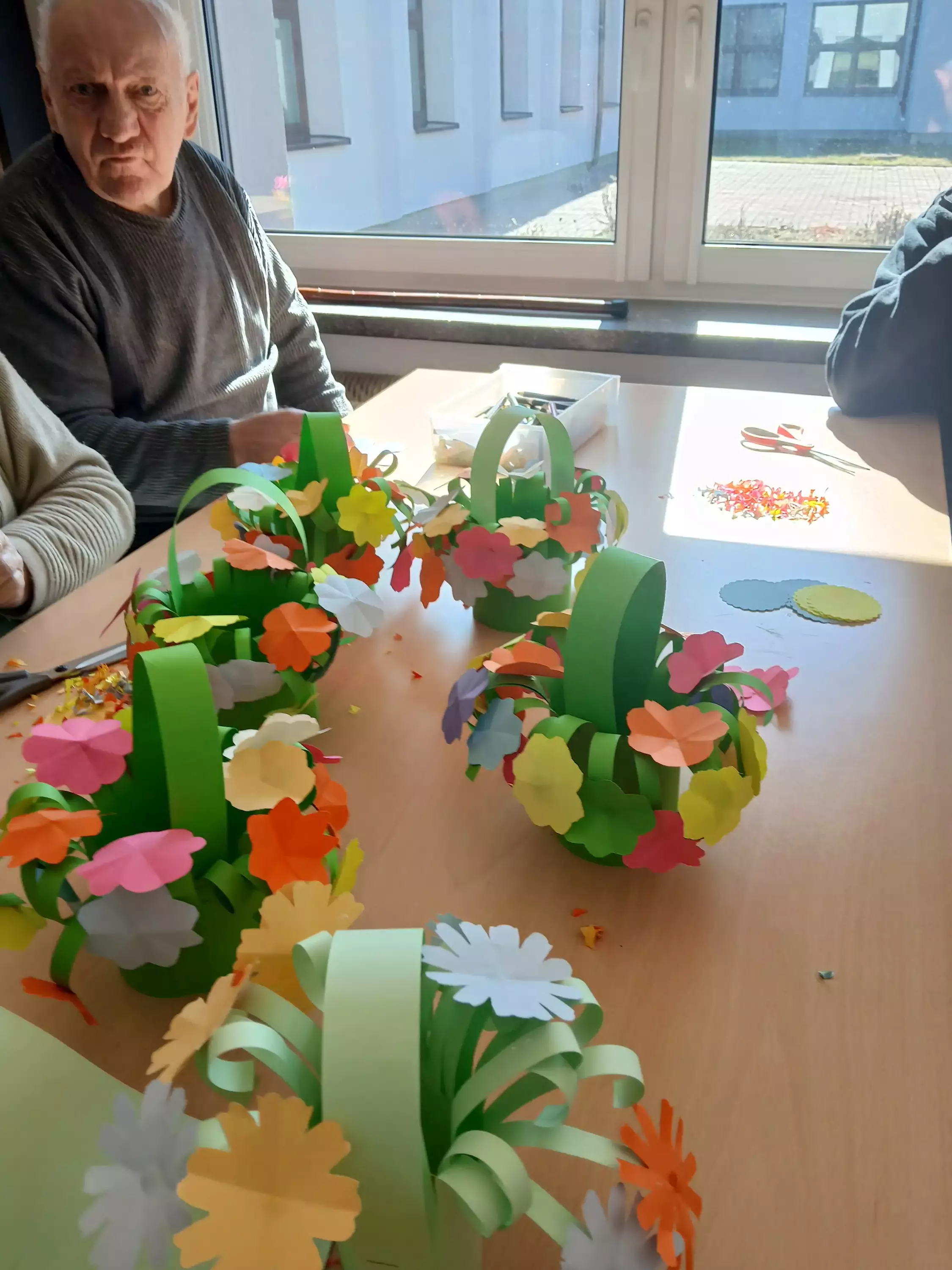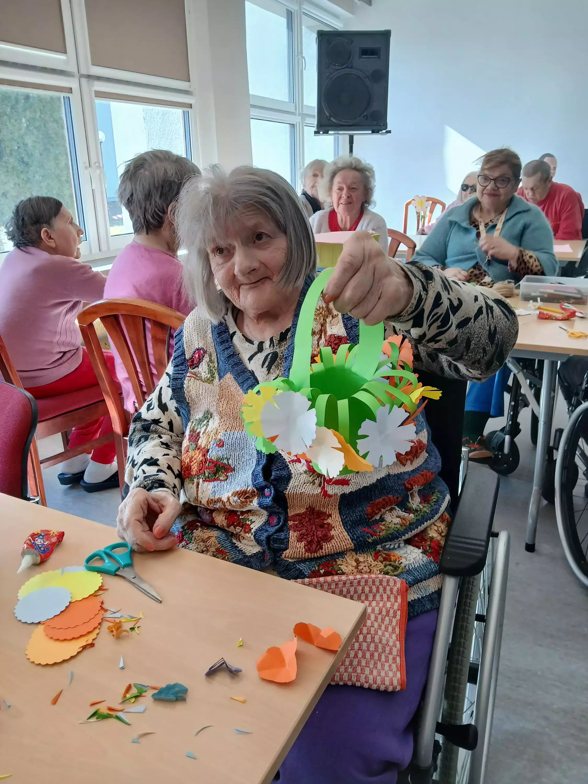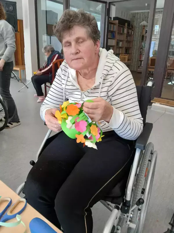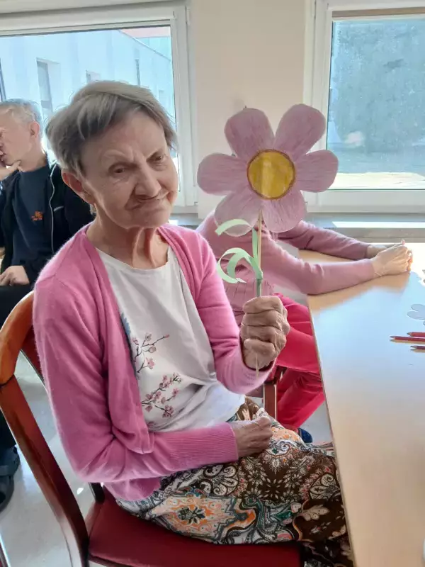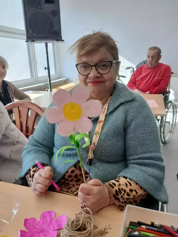 Integracja między segmentami podczas Dnia Kobiet przebiegła w cieplej i serdecznej atmosferze najpierw uczestnicy zaangażowali się w twórcze działania przygotowując piękne kwiaty z papieru oraz koszyczki z kwiatami. Był to moment pełen kreatywności współpracy i wspólnego świętowania ,które pozwoliło wszystkim poczuć się częścią wyjątkowego wydarzenia ,następnie po zakończeniu prac plastycznych na terapii był słodki poczęstunek. Pozwoliło to mieszkańcom poczuć i docenić ten wyjątkowy dzień.