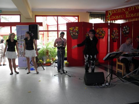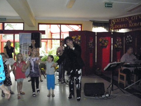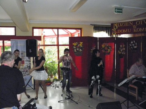 Oficjalnego otwarcia dokonała dyrektor DPS pani Jadwiga Kozicka i zaczęliśmy zabawę. Tegoroczny DZIEŃ OTWARTY uświetniła swoim występem pani Bernadeta Kowalska piosenkarka związana z Radiem Piekary. Dynamiczny i radosny recital porwał do zabawy wszystkich. Oklaskom nie było końca i pani Bernadeta z zespołem musiała bisować.