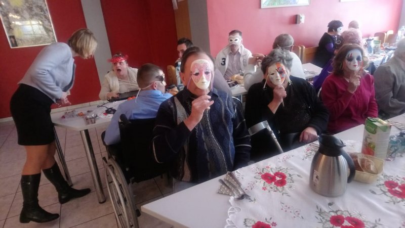 W lutym nasi mieszkańcy wybrali się na zabawę karnawałową do Domu Pomocy Społecznej ,,Kombatant” w Bytomiu. Impreza miała charakter zabawy maskowej. Każdy z naszych mieszkańców ze swoją maską, pięknie wystrojony doskonale bawił się podczas bytomskiej zabawy. Nie zabrakło wspólnych tańców i zabaw. Każdy posilił się smacznym bograczem aby mieć siły do tańcowania. Było także słodkie co nieco w postaci ciasta i kawy. Trzeba przyznać, że imprezę jak najbardziej zaliczamy do udanych. Lubimy odwiedzać Bytom, gdzie zawsze spotykamy się z miłą i ciepłą atmosferą.