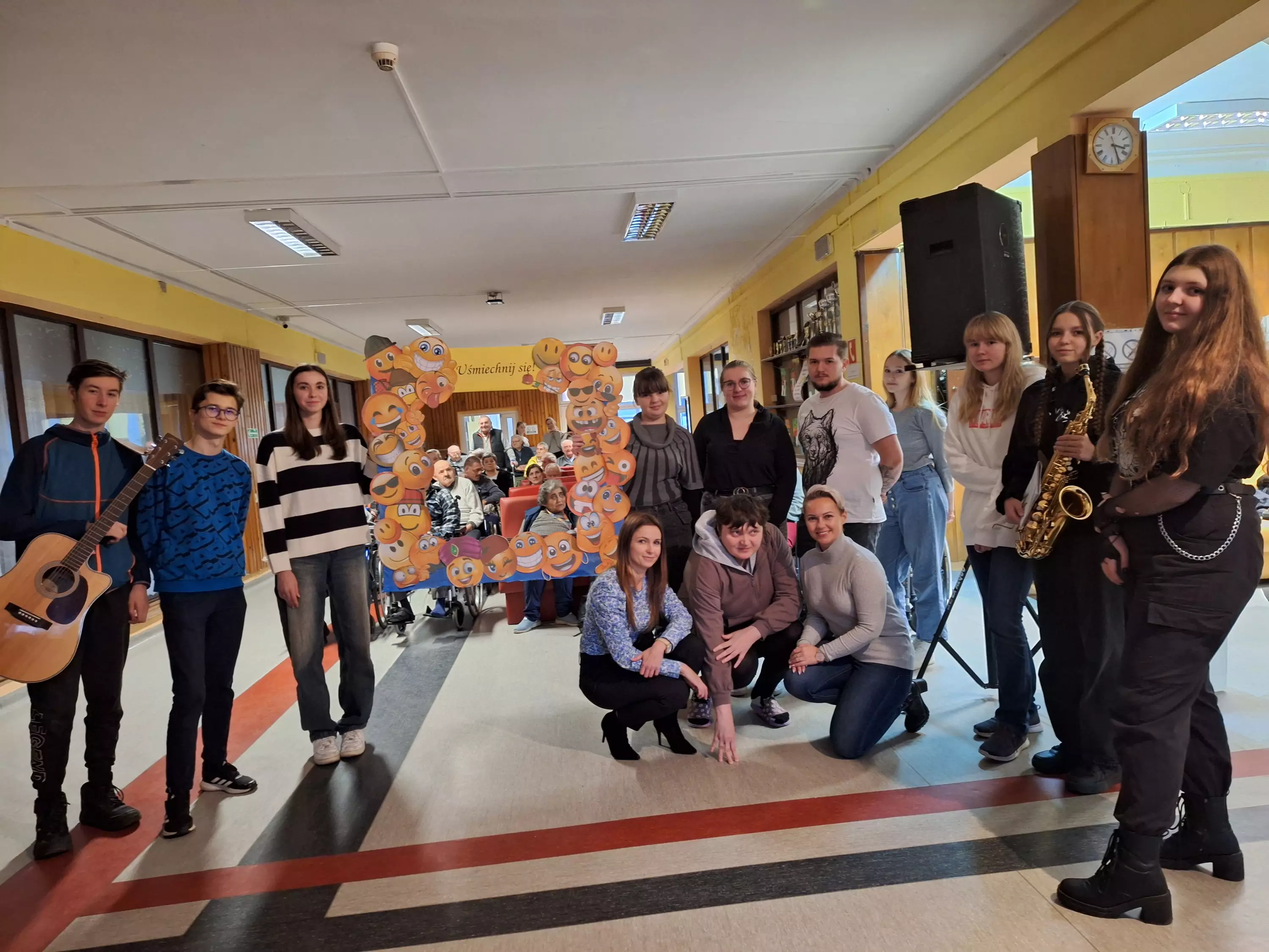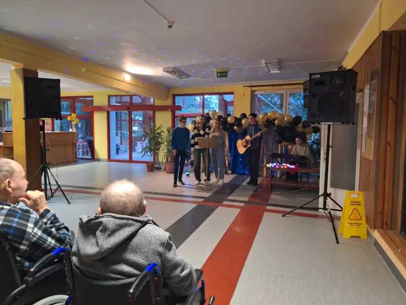 W dniu 22.11.2023r odwiedzili nas uczniowie z liceum ogólnokształcącego im. Adama Mickiewicza w Lublińcu. Młodzież zorganizowała dla naszych mieszkańców ”Koncert życzliwości” na którym uczniowie grali na instrumentach i śpiewali. Mieszkańcy zachęceni przez uczniów porwali się do tańca i wspólnego śpiewu. Nasi podopieczni byli bardzo szczęśliwi i wzruszeni że są jeszcze młodzi ludzie którzy chętnie spędzają z nimi swój wolny czas. Czekamy na kolejne spotkanie i dziękujemy .