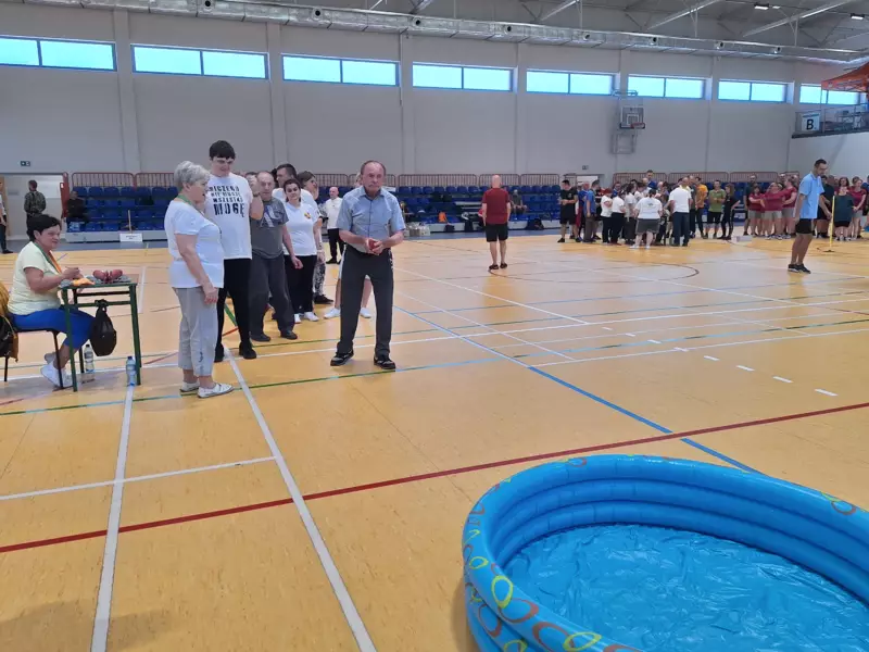 W dniu 27.09.2023r w miejscowości Turawa odbyły się zawody sportowe. Igrzyska odbywały się pod Honorowym patronatem Marszałka Województwa Andrzeja Buły. Miejscem odbywania się tych Igrzysk, była hala Sportowa przy Szkole Podstawowej w Turawie. Zawody były podzielone na dwie tury i w dwóch grupach A i B. O godzinie 11.00 nastąpiło uroczyste otwarcie zawodów i spotkanie wszystkich grup. Wszyscy uczestnicy zostali bardzo mile przywitani przez organizatorów i władze gminy Turawa wraz z prowadzącym, który bardzo profesjonalnie i szczegółowo komentował przebieg zawodów i zachęcał do czynnego uczestnictwa .W skład konkurencji wchodziło miedzy innymi wrzucanie rybek do basenu, tor przeszkód ze strzałem do bramki piłką ,zbieranie grzybów na czas ,rzut szyszkami do koszyka oraz bieg na dystans z kłodą drewna. Zawody przebiegły przy ostrej rywalizacji zawodników i w przyjaznej atmosferze. Wszyscy podopieczni byli, pod troskliwą opieką swoich opiekunów. Po zakończeniu zawodów nastąpiło uroczyste wręczenie nagród oraz każdy z uczestników otrzymał drobne upominki i pamiątkowe medale a każdy dom pamiątkowy puchar. Na koniec zawodów odbyło się gorące podziękowanie przez organizatorów i zaproszenie na smaczny domowy obiad w Zajeździe Ośrodka Jowisz, który jest położny nad jeziorem Turawa. Po obiedzie i pomoczeniu nóg w jeziorze wszyscy rozjechaliśmy się do swoich Ośrodków.