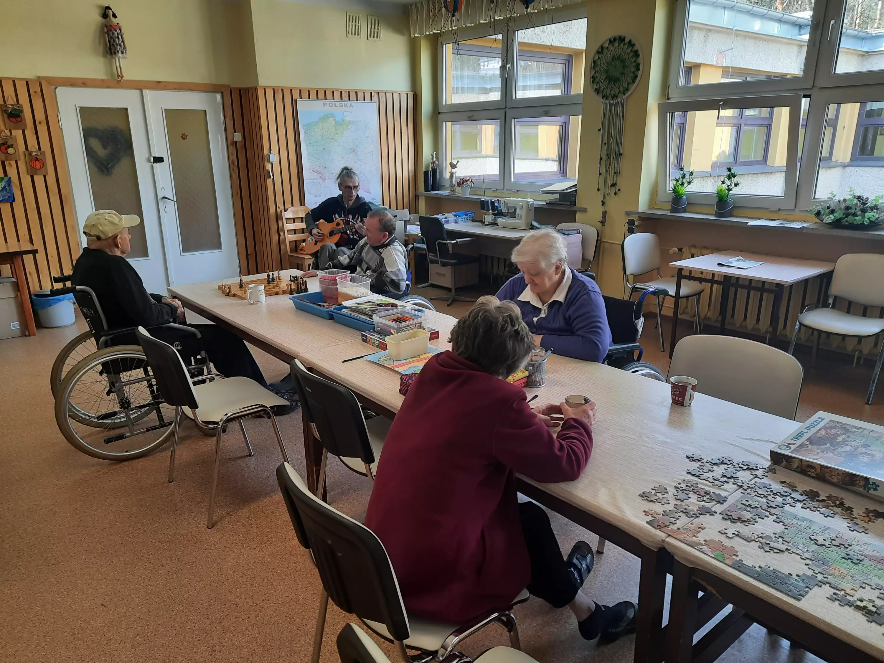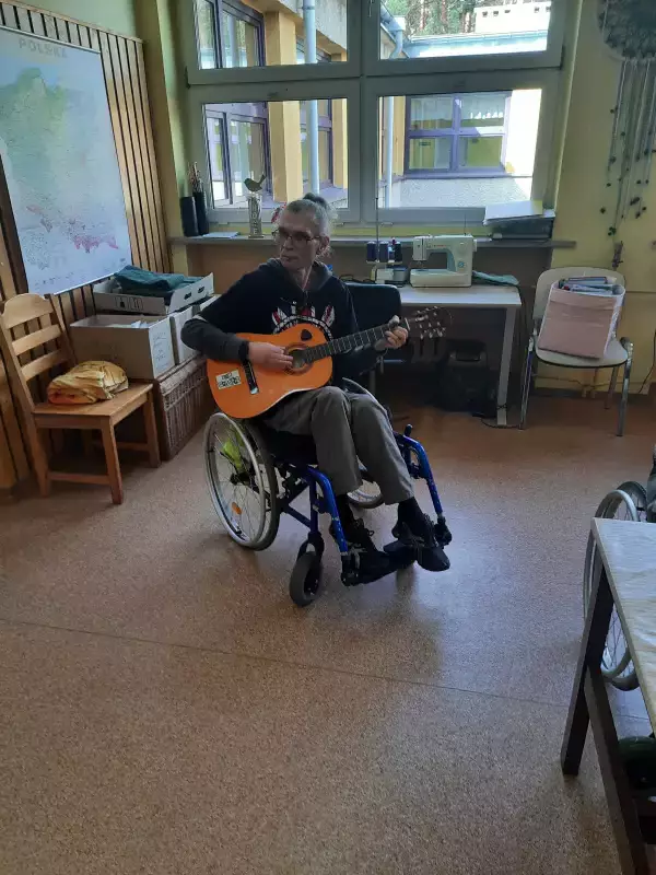 Na terapii zajęciowej mieliśmy okazję podziwiać kunszt muzyczny mieszkańca naszego domu p.Rafała, który dał popis swoim umiejętnościom gry na gitarze. Zaprezentował nam klasyki polskiej muzyki aż miło było słuchać i śpiewać. Pan Rafał opowiedział również jak wyglądała jego przygoda z instrumentem