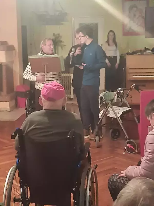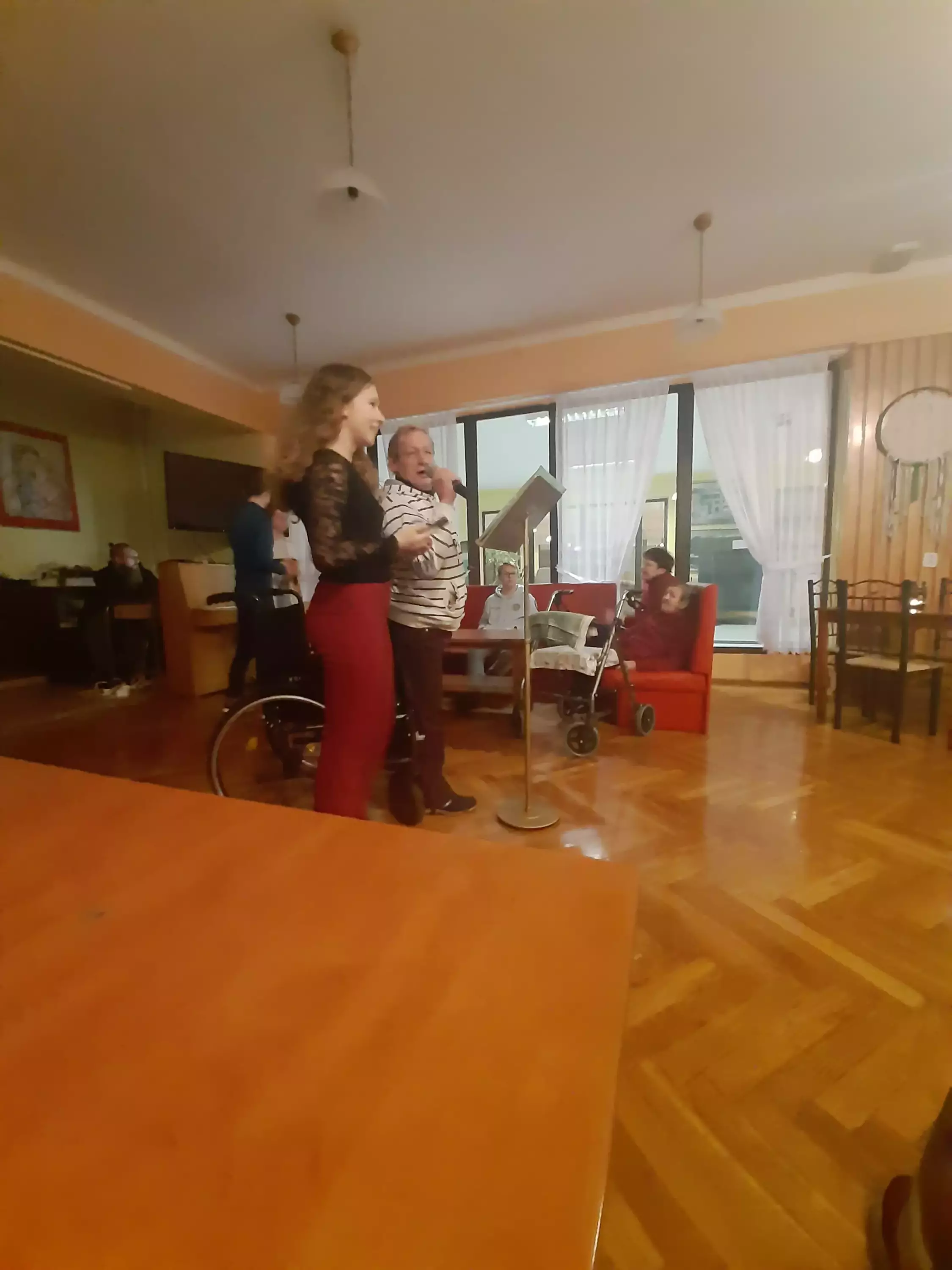Muzyczny wieczorek z uczniami z Zespołu Szkół nr 1 im. Adama Mickiewicza w Lublińcu dostarczył wszystkim wiele niezapomnianych wrażeń. Uczniowie w pierwszej części zaprezentowali swój kunszt muzyczny. Mogliśmy podziwiać wiele utalentowanych uczniów, którzy zaprezentowali dobrze znane nam klasyki m.in. Wodeckiego, Niemena czy Rosiewicza. W drugiej części przeszliśmy do części artystycznej w której wystąpili także nasi podopieczni. Wspólne karaoke wywołało wiele radości na ustach całej publiki.