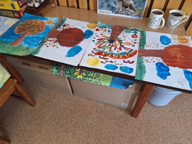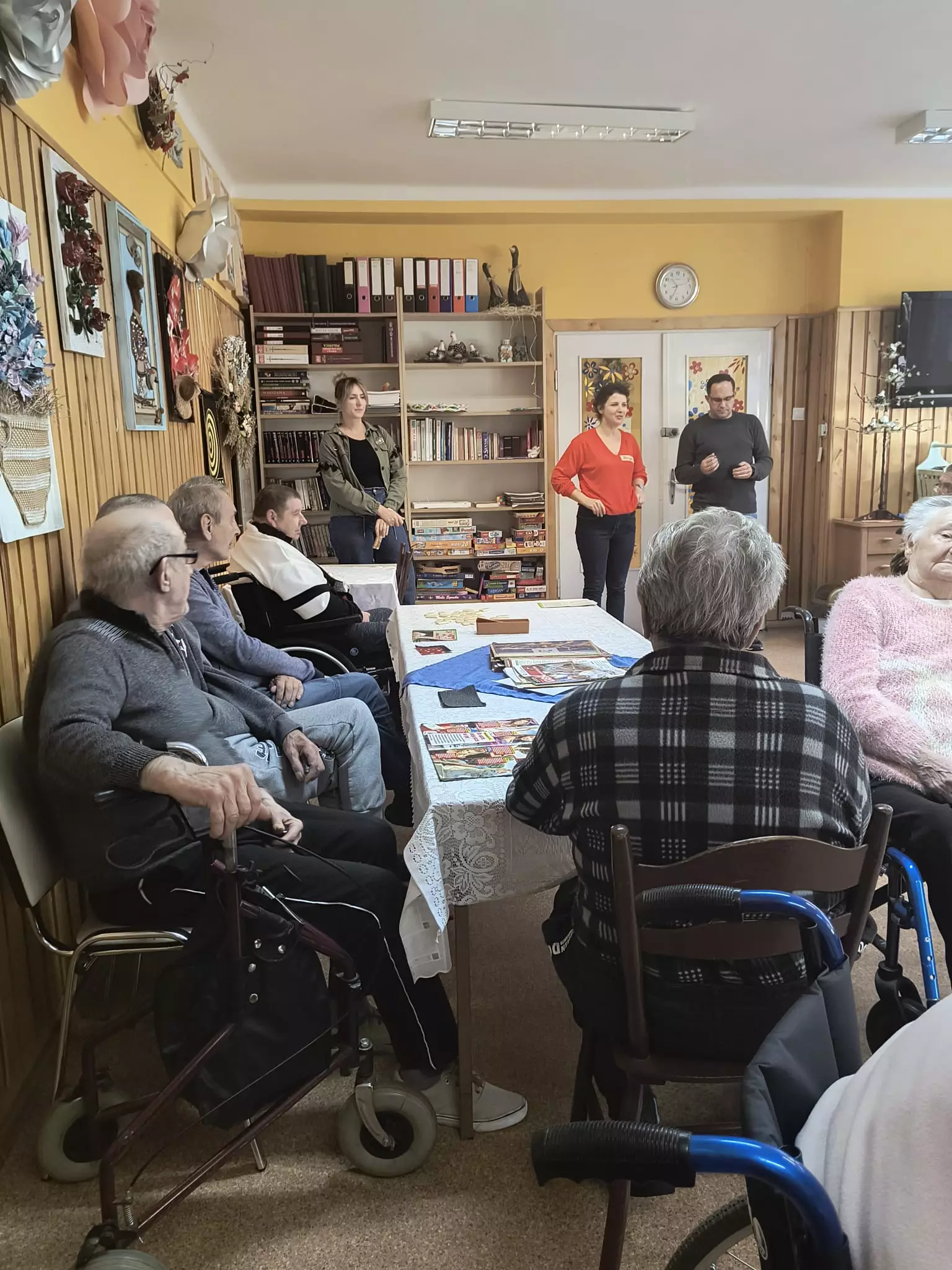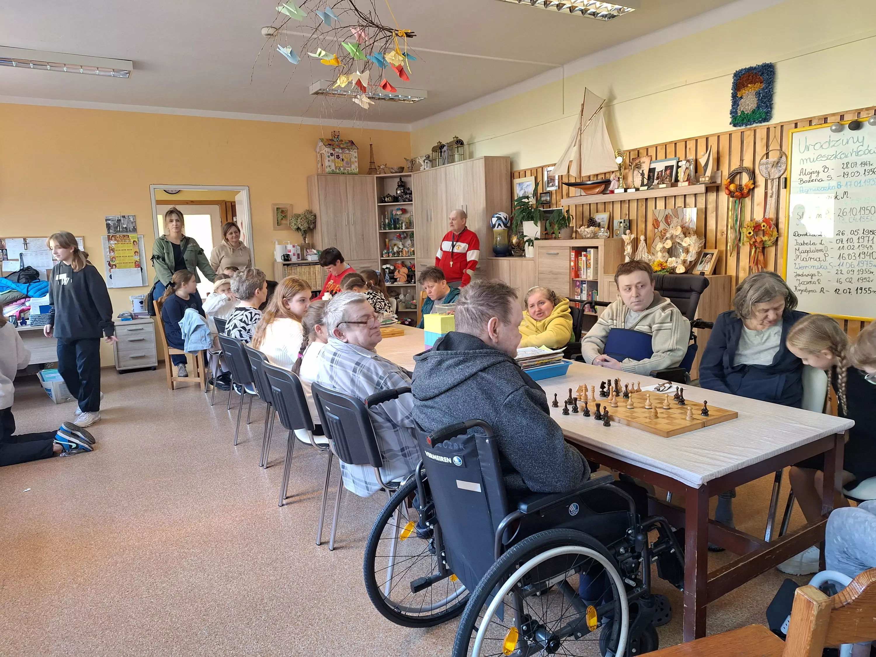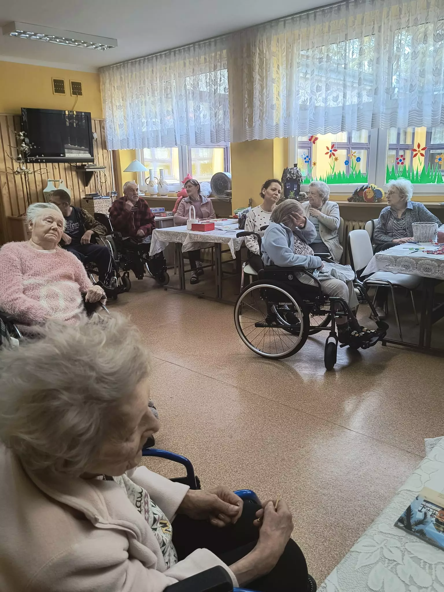 Dzisiaj zaszczyciły nas swoją obecnością dzieci, które uczęszczają do szkoły podstawowej nr 4 w Lublińcu. Dzieci z różnych klas, które po przedstawieniu się zaprezentowały nam nowoczesne formy tańca, zaśpiewały wspólnie piosenki oraz malowali farbami ,kredkami symbol jesieni „Jesienne drzewo”. Były prezenty dla naszych podopiecznych rozgrzewająca herbatka i coś słodkiego a przede wszystkim piękne i radosne uśmiechy ,którymi dzieci dzieliły się z naszymi mieszkańcami. Zadowolenie naszych podopiecznych było ogromne takie spotkania są bardzo ważne dla naszych mieszkańców jaki i dzieci. Dziękujemy i z niecierpliwością czekamy na kolejne spotkanie.