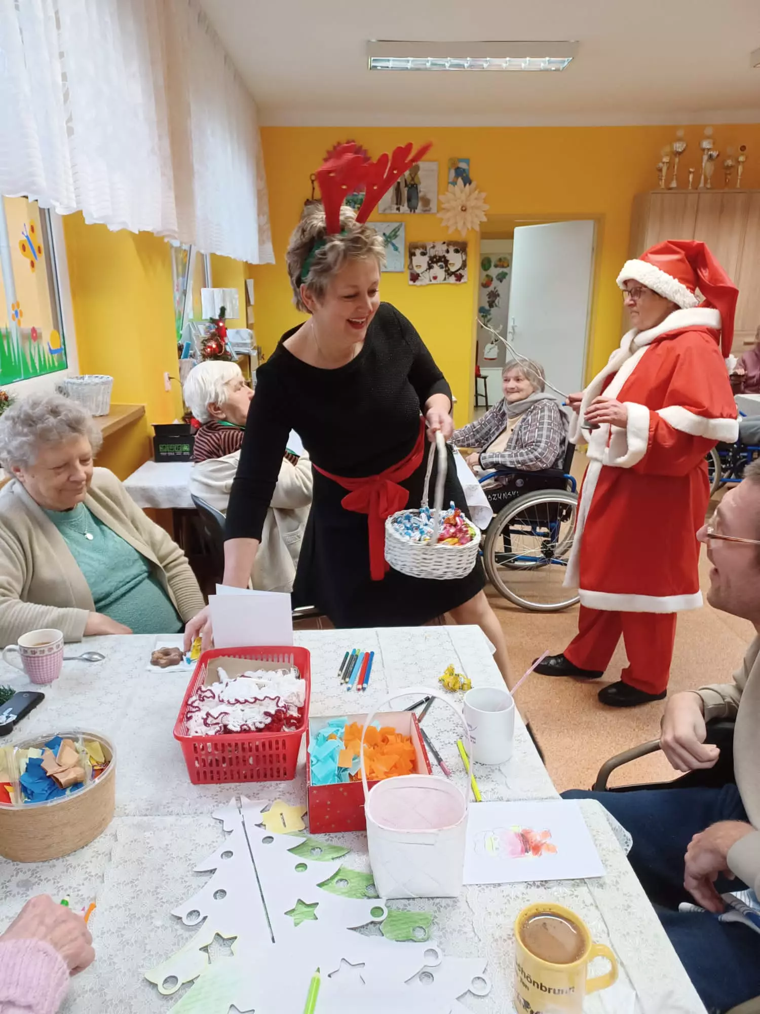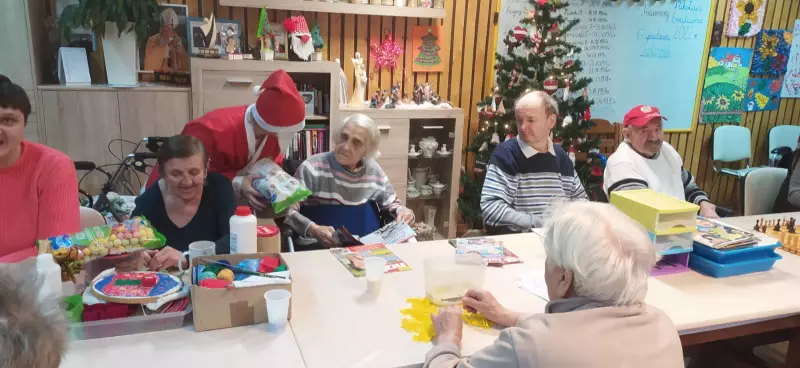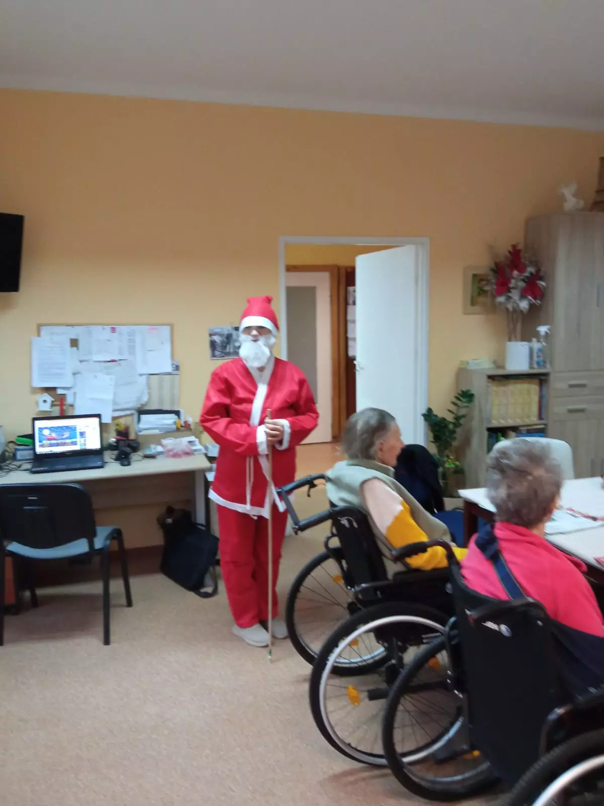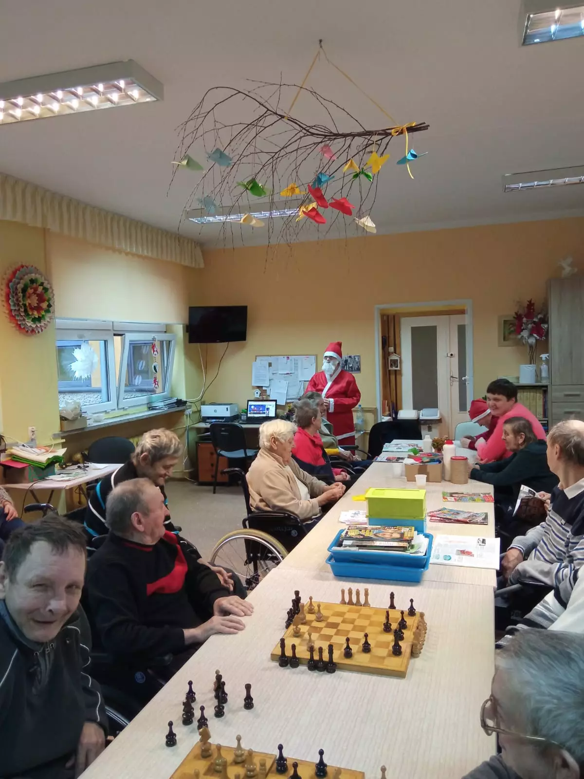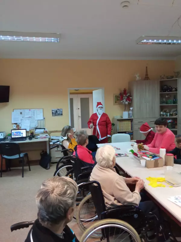 6 grudzień to data wszystkim dobrze nam znana w ten oto bowiem dzień do grzecznych dzieci przychodzi św. Mikołaj aby obdarować wszystkich prezentami. Jednak nie tylko dzieci obchodzą mikołajki my również postanowiliśmy przygotować się na spotkanie z doręczycielem prezentów bądź rózgi jeśli ktoś był niegrzeczny. Wszyscy z niecierpliwością oczekiwaliśmy aby pojawił się, wspólnymi siłami i głosem wołaliśmy ,,Mikołaju, Mikołaju”. I w końcu zjawił się z wielkim worem prezentów. Wszyscy ucieszyli się na jego widok zanim jednak doszło do rozdawania paczek, Mikołaj pogawędził sobie mieszkańcami. Czas minął miło w nastrojowej świątecznej muzyce. Mamy nadzieję, że do zobaczenia w przyszłym roku Święty Mikołaju!!!