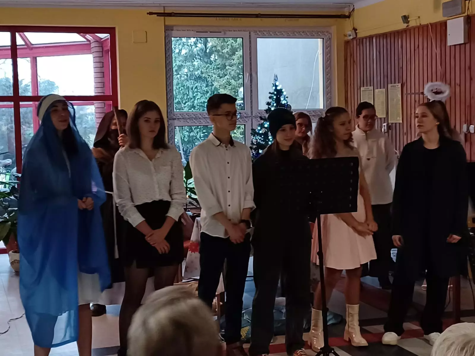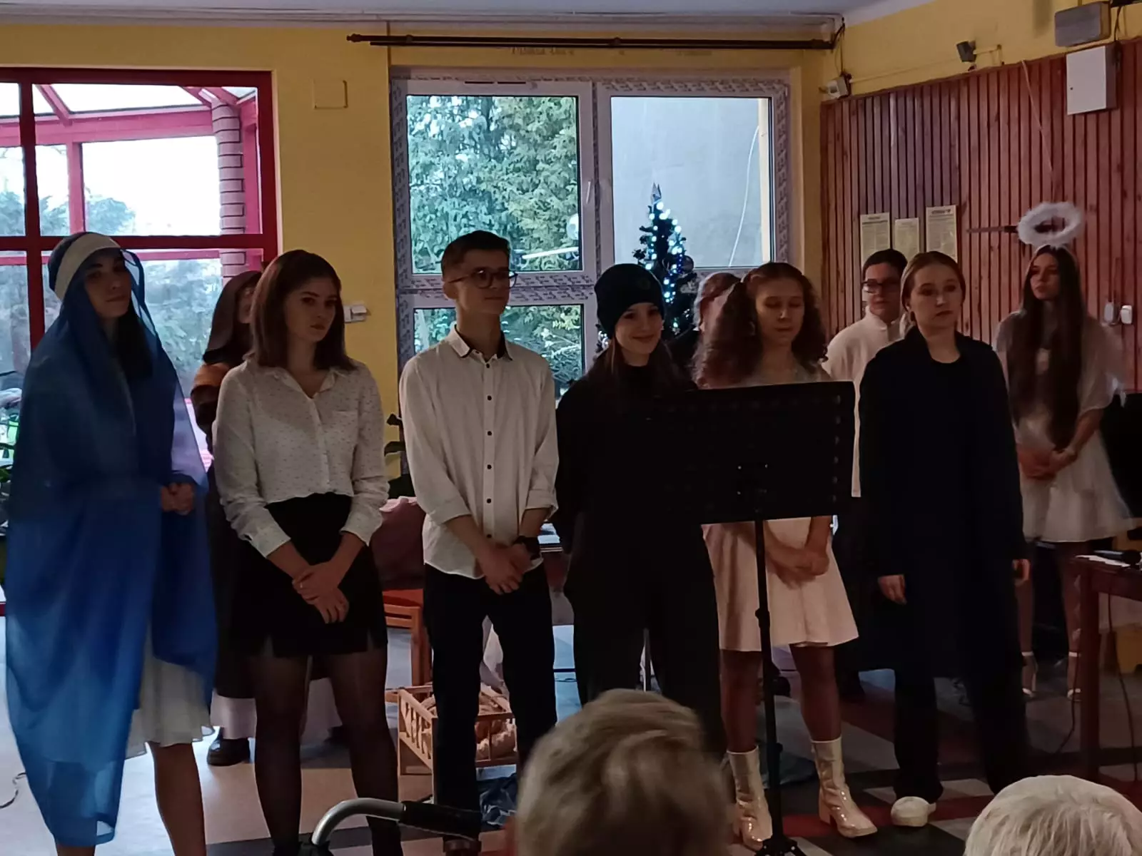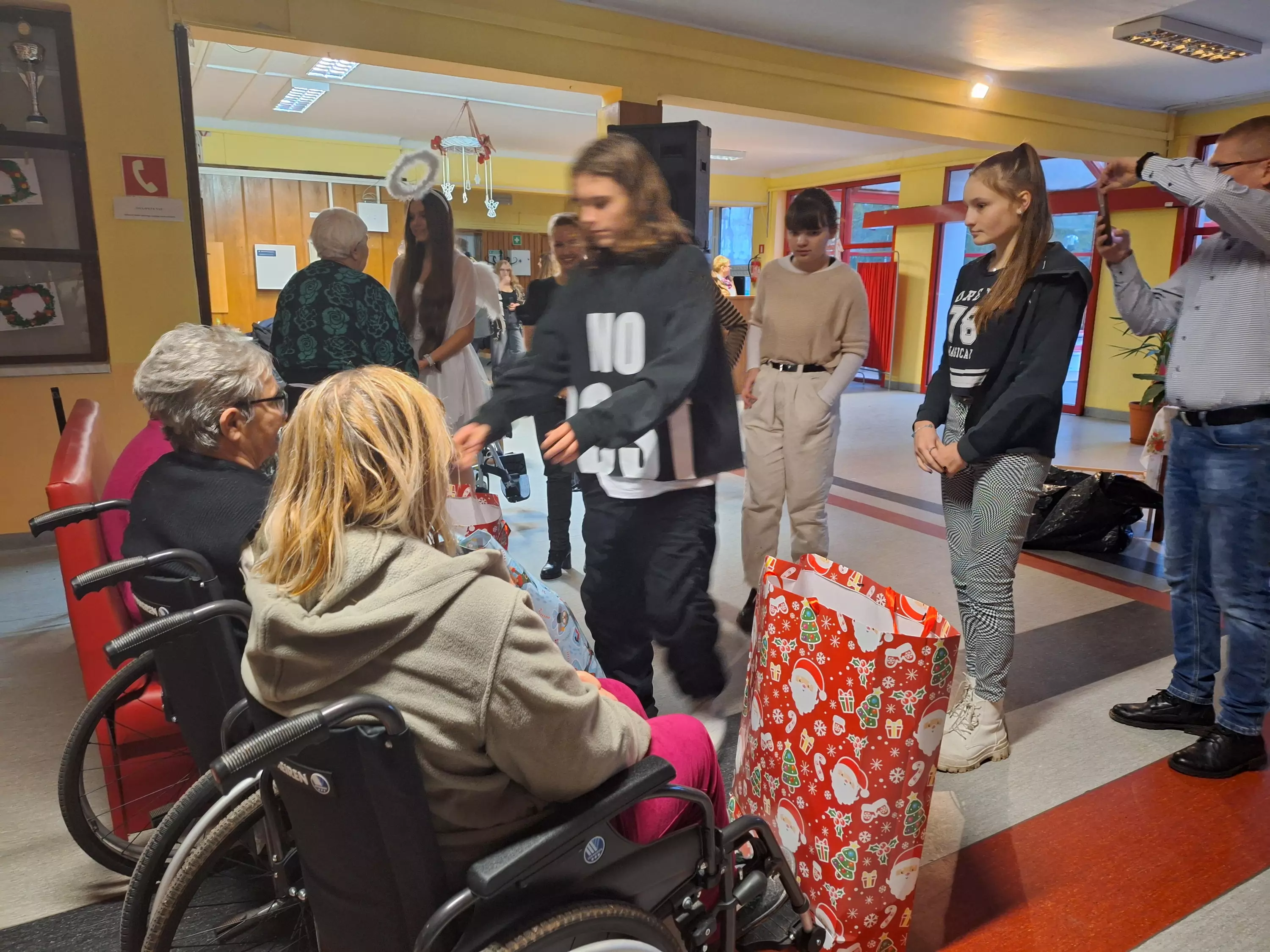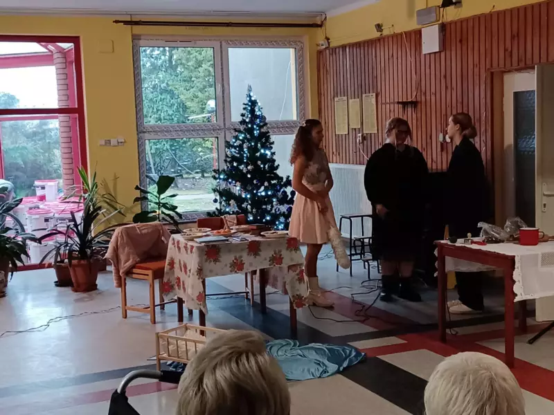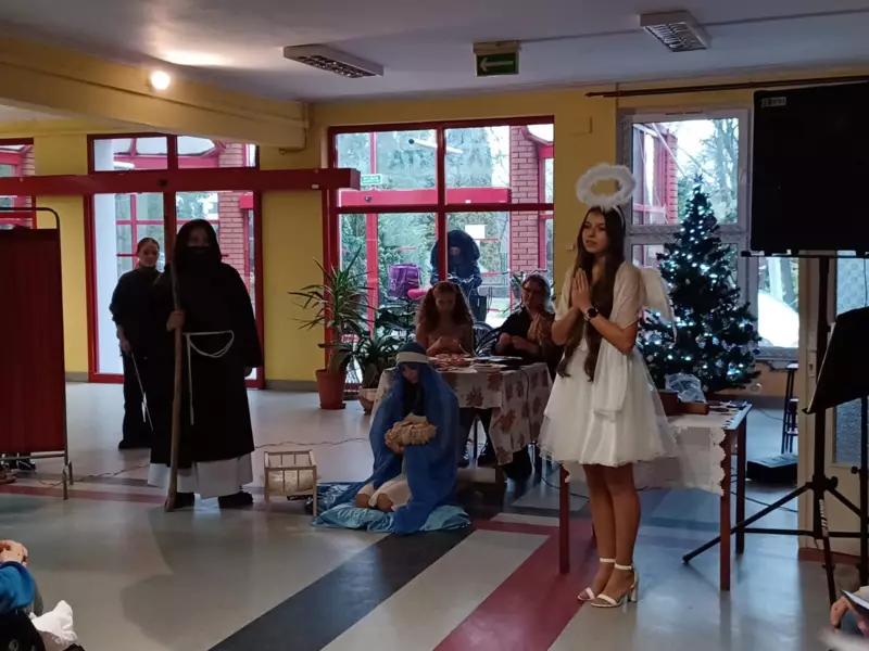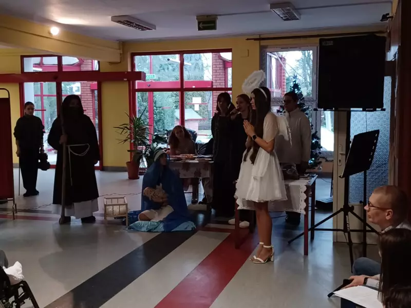 Niezawodna grupa wolontariuszy z LO w Lublińcu odwiedziła naszych mieszkańców z przedstawieniem o narodzeniu Dzieciatka Jezus. Przesłaniem występu było ukazanie Boga w każdym człowieku, szczególnie tym potrzebującym. Młodzież zaprezentowała popularne światowe standardy świąteczne oraz wspólnie zaśpiewaliśmy kolędy. Dziękujemy za mile spędzony czas. Na koniec kilku Naszych mieszkańców dostało piękne prezenty od wolontariuszy dla których nasi podopieczni nagrali krótki filmik w którym dziękują im za ich dobroć i zaangażowanie.