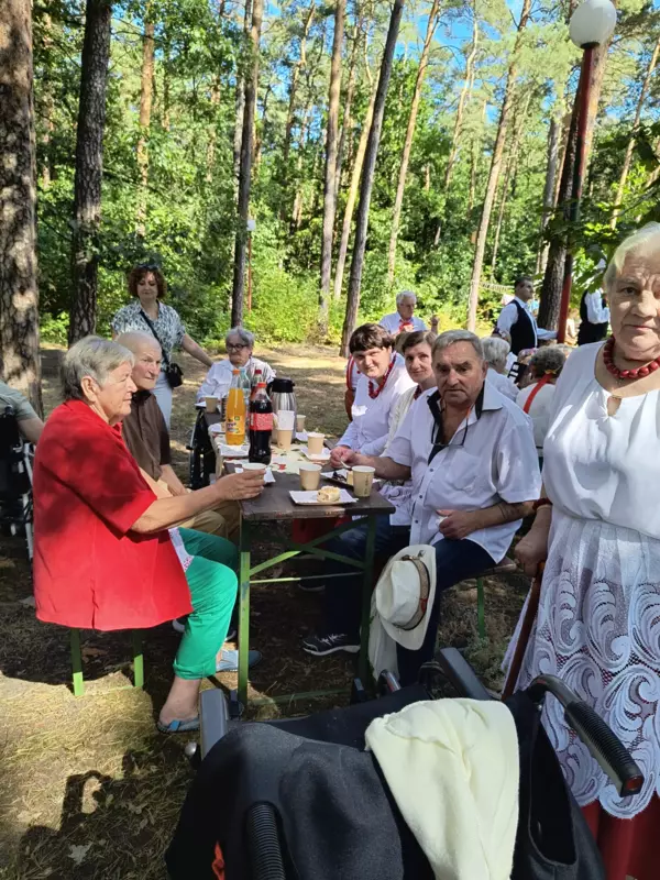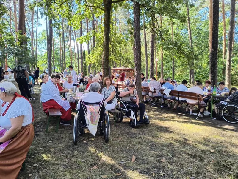 4 września br. nasi mieszkańcy mieli okazję uczestniczyć w Pikniku Śląskim, organizowanym przez Dom Pomocy Społecznej „Zameczek” w Lublińcu. Droga na miejsce prowadziła malowniczym leśnym szlakiem, dzięki czemu już sam spacer był pełen przyjemnych wrażeń.