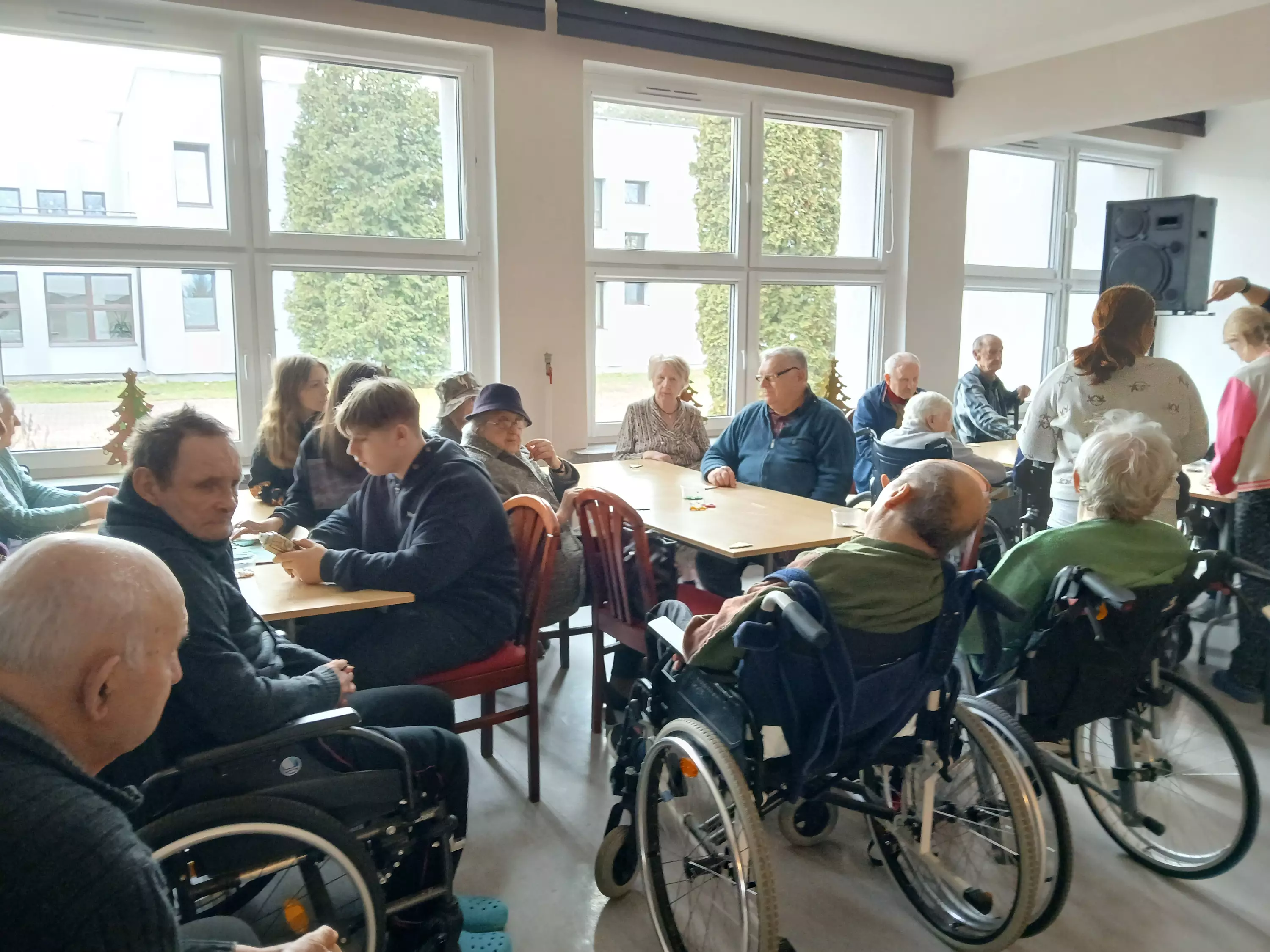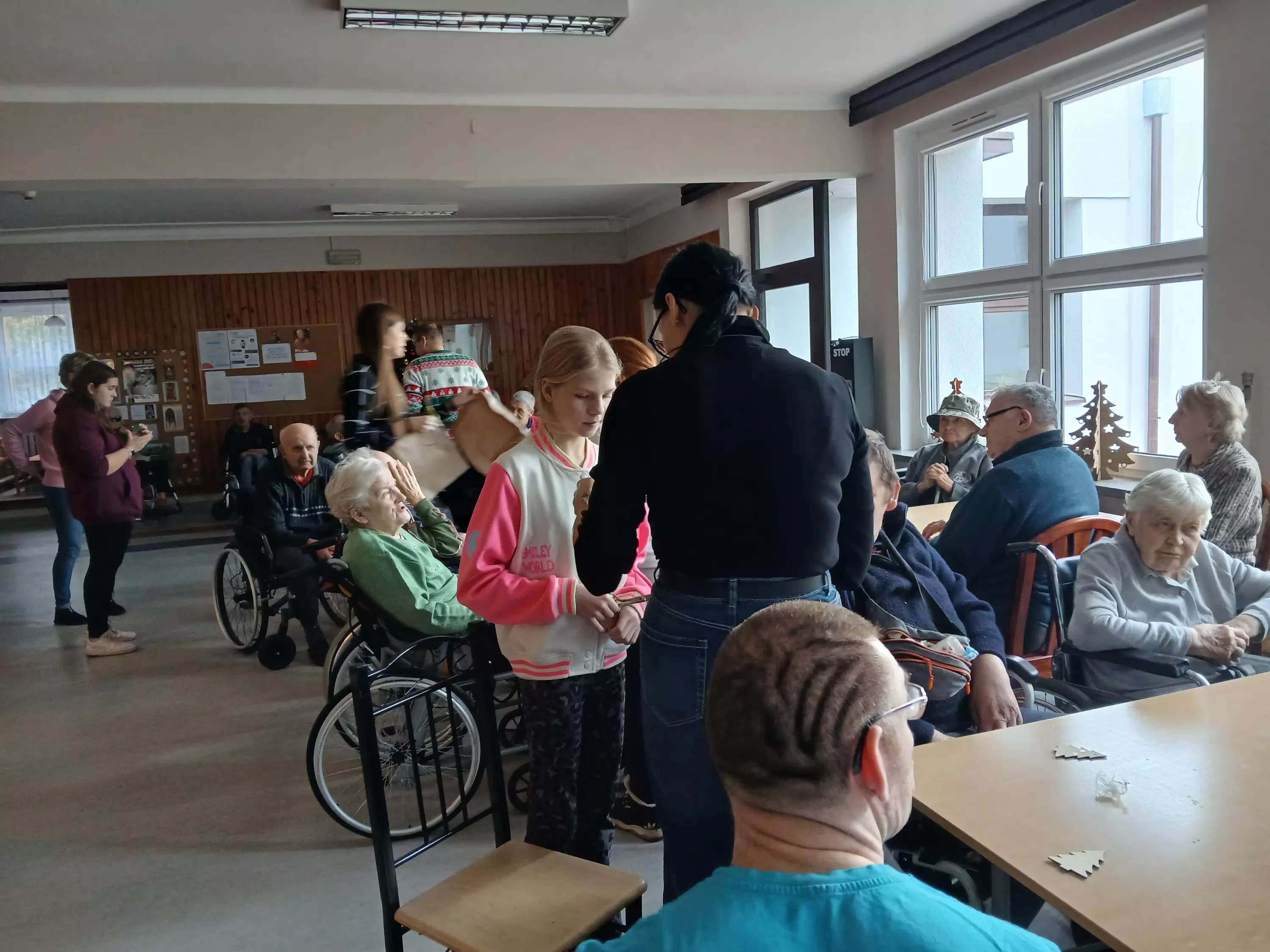 W dniu 18.12.2024r naszych podopiecznych odwiedziły dzieci z Ośrodka Szkolno –Wychowawczego w Lublińcu, które wspólnie z naszymi mieszkańcami wykonali piękne choinki. Uczniowie przynieśli również piękne prezenty dla naszych seniorów. Dziękujemy za miło spędzony czas.
