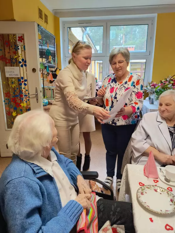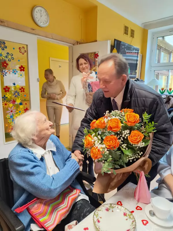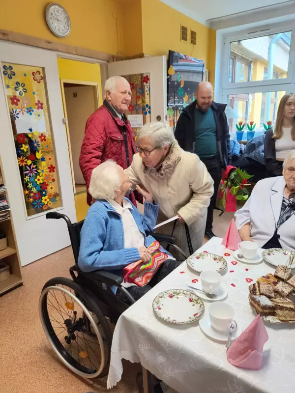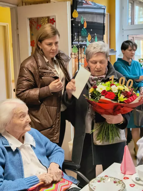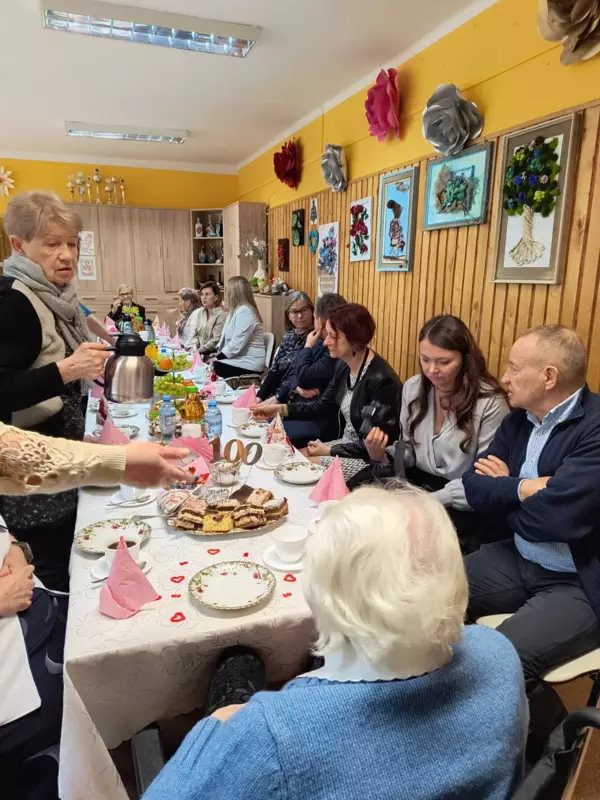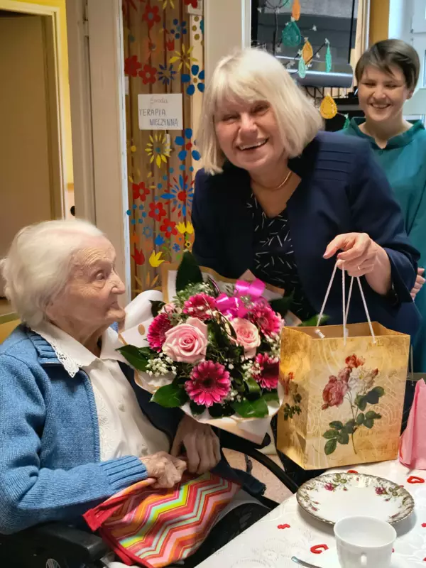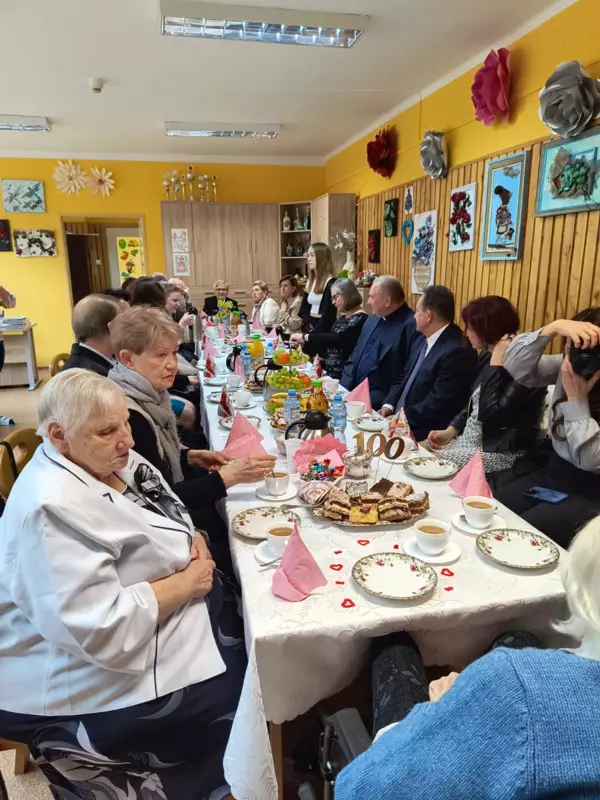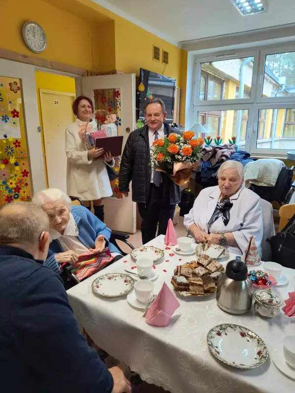 Dnia 28.02.2024r mieszkanka DPS Pani Bronisława Pyka obchodziła swoje 100 urodziny. Przygotowano dla Jubilatki przyjęcie urodzinowe w gronie najbliższych. Pani Bronisława otrzymała mnóstwo życzeń i kwiatów. Osobiście życzenia złożył Burmistrz Lublińca Pan Edward Maniura oraz przekazał list gratulacyjny od Premiera RP. Życzenia złożyła Pani Dyrektor DPS Ewelina Malecka oraz delegacja Związku Niewidomych z Lublińca. Solenizantka otrzymała również życzenia od Związków Inwalidów Wojennych. Dzień urodzin był wzruszający dla Solenizantki jak również dla gości i pracowników DPS.