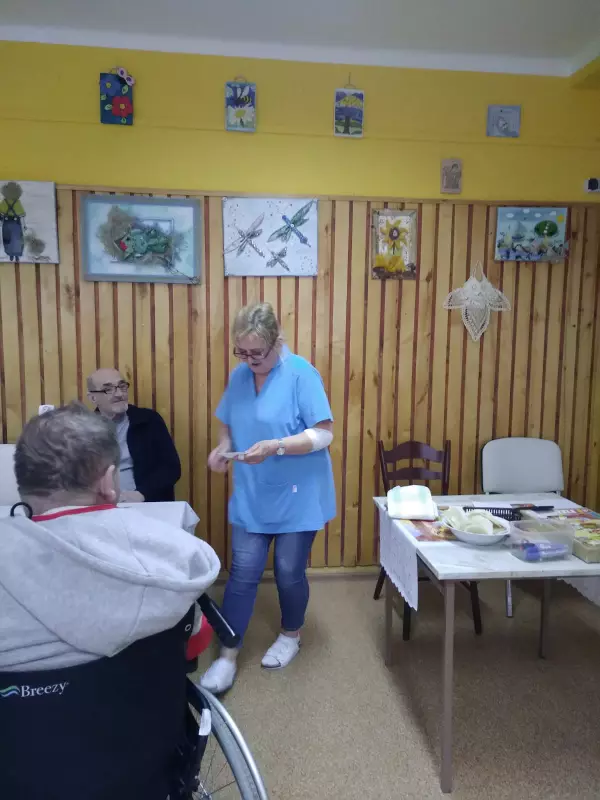 Światowy Dzień Zdrowia. Na terapii zajęciowej dalszy ciąg cyklu edukacji zdrowia publicznego i psychicznego. Pielęgniarka p. Alina przeprowadziła wykład na temat koła La Londa mówiący od czego i w ilu procentach zależy nasze zdrowie, jakie czynniki mają wpływ na nasz styl życia. Wykład wzbudził ogromne zainteresowanie wśród mieszkańców.