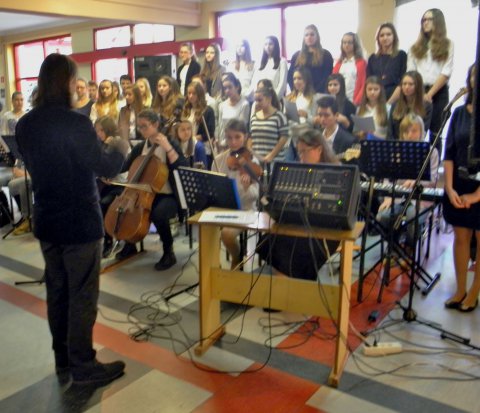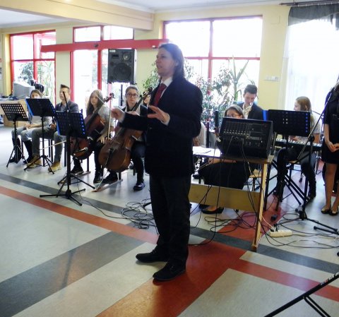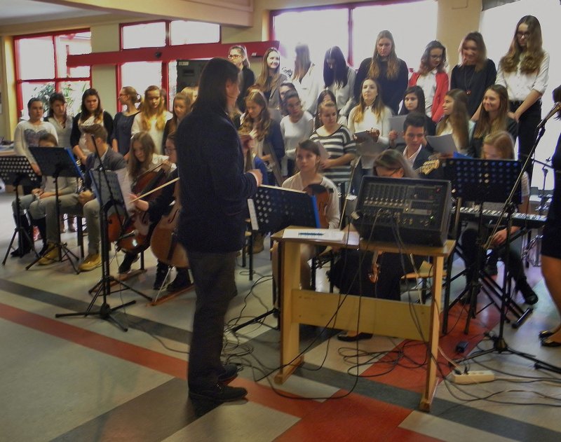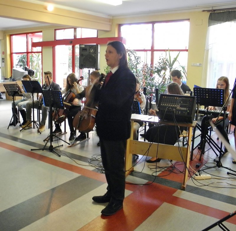 Z okazji Święta Niepodległości gościliśmy w DPS „Dom Kombatanta” Zespół „OCH” z gimnazjum nr 1 w Lublińcu. Uczniowie i absolwenci gimnazjum występujący w zespole kierowanym przez pana Krzysztofa Gembałę wykonali kilkanaście pieśni patriotycznych. Sam występ miał niejako dwie części: w pierwszej chór i orkiestra prezentowali się samodzielnie, w drugiej chór wmieszał się w widownie i wraz z mieszkańcami wspólnie zaśpiewali kolejne pieśni. Pomysł okazał się znakomity, bowiem mieszkańcy żywo włączyli się w śpiew a wielu z nich autentycznie się wzruszyło. Pięknie dziękujemy Zespołowi „OCH” i jej dyrygentowi Panu Krzysztofowi Gembale. Podziękowania kierujemy także do pani Marzenie Kowalczyk-Jassak, która wspierała inicjatywę występu młodzieży w Naszym Domu.