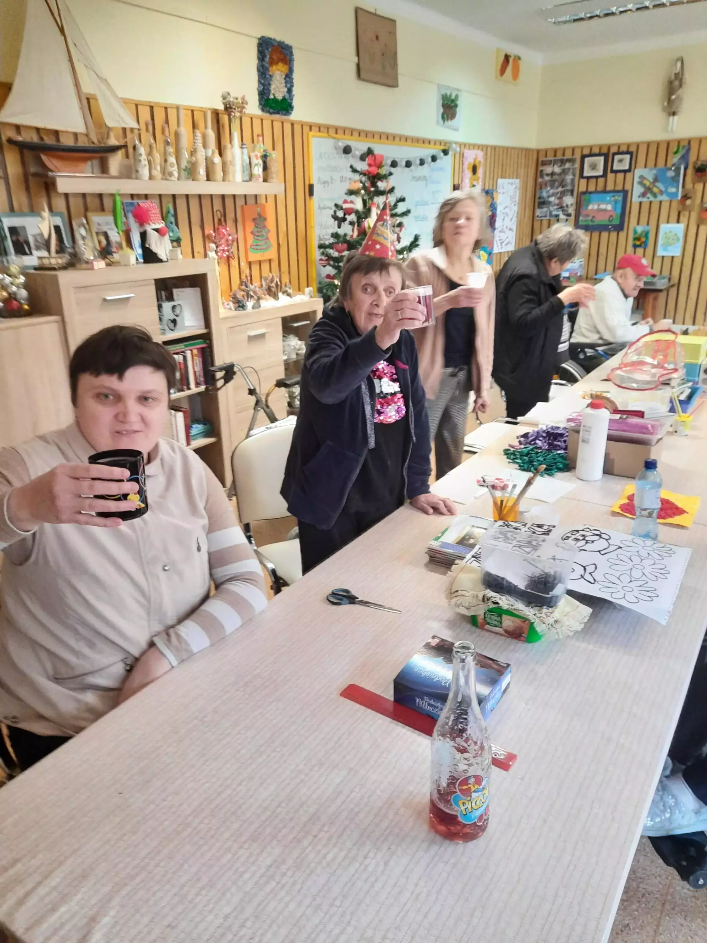 Tuż przed Sylwestrem na terapiach postanowiliśmy wspólnie hucznie przywitać Nowy Rok. Mimo, że impreza odbyła się do południa to i tak mieszkańcom bardzo spodobał się pomysł z przywitaniem 2023 roku. Nie zabrakło popularnego Piccolo i oczywiście najważniejszego, czyli życzeń noworocznych. Czego sobie życzyliśmy? Przede wszystkim zdrowia, pogody duchy, spokoju, radości i cierpliwości. Mamy nadzieję, że w Nowym Roku nasza współpraca z mieszkańcami będzie równie udana jak w roku poprzednim.