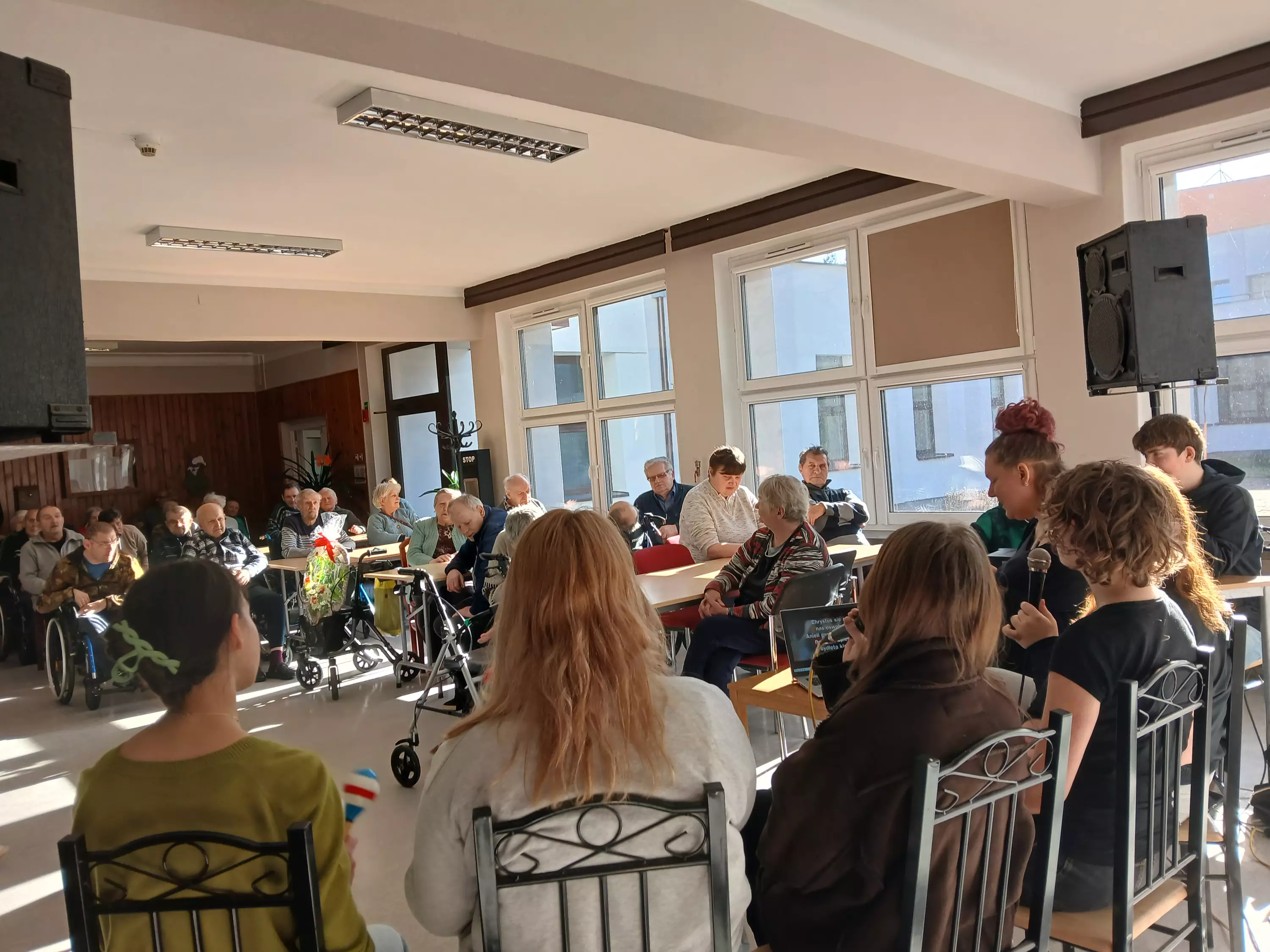 W dniu 30.01.2025r odwiedzili nas uczniowie z Zespołu Szkół Ogólnokształcąco- Technicznego w Lublińcu „KAZIK” z pięknym występem kolędowym. Uczniowie śpiewali kolędy te znane wszystkim naszym podopiecznym ale również zaśpiewali piosenki mało znane, które wzruszyły nas bardzo i poruszyły nie jedno serce. Bardzo dziękujemy za piękny występ i radość jaką wnieśliście do naszego Domu.