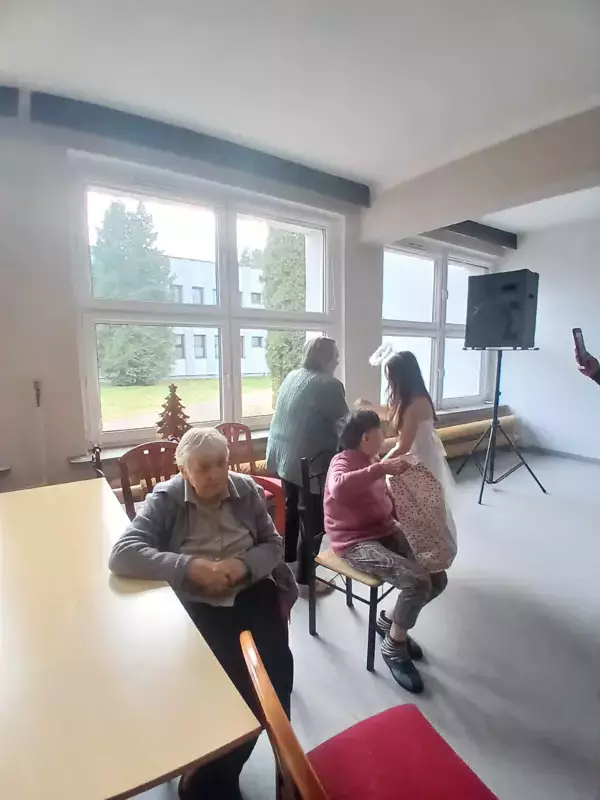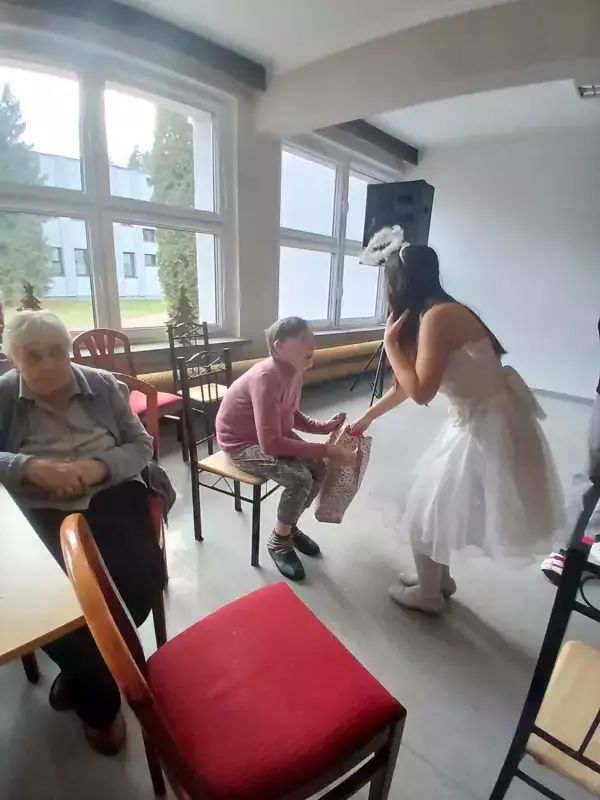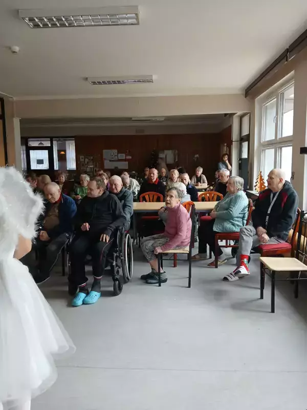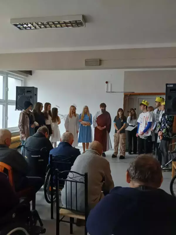 W Dniu 18.12.2024r odwiedziła nas młodzież ze szkoły Adama Mickiewicza w Lublińcu z występem z okazji Świąt Bożego Narodzenia. Uczniowie przedstawili” Jasełka” na temat ,że nie pieniądze a rodzina jest w życiu najważniejsza i że Święta to czas miłości i radości oraz wzajemnej życzliwości. Nasi wspaniali uczniowie również rozdali naszym mieszkańcom piękne prezenty, które sprawiły ze nasi podopieczni poczuli radość i szczęście. Bardzo dziękujemy że jesteście z nami i o nas pamiętacie.