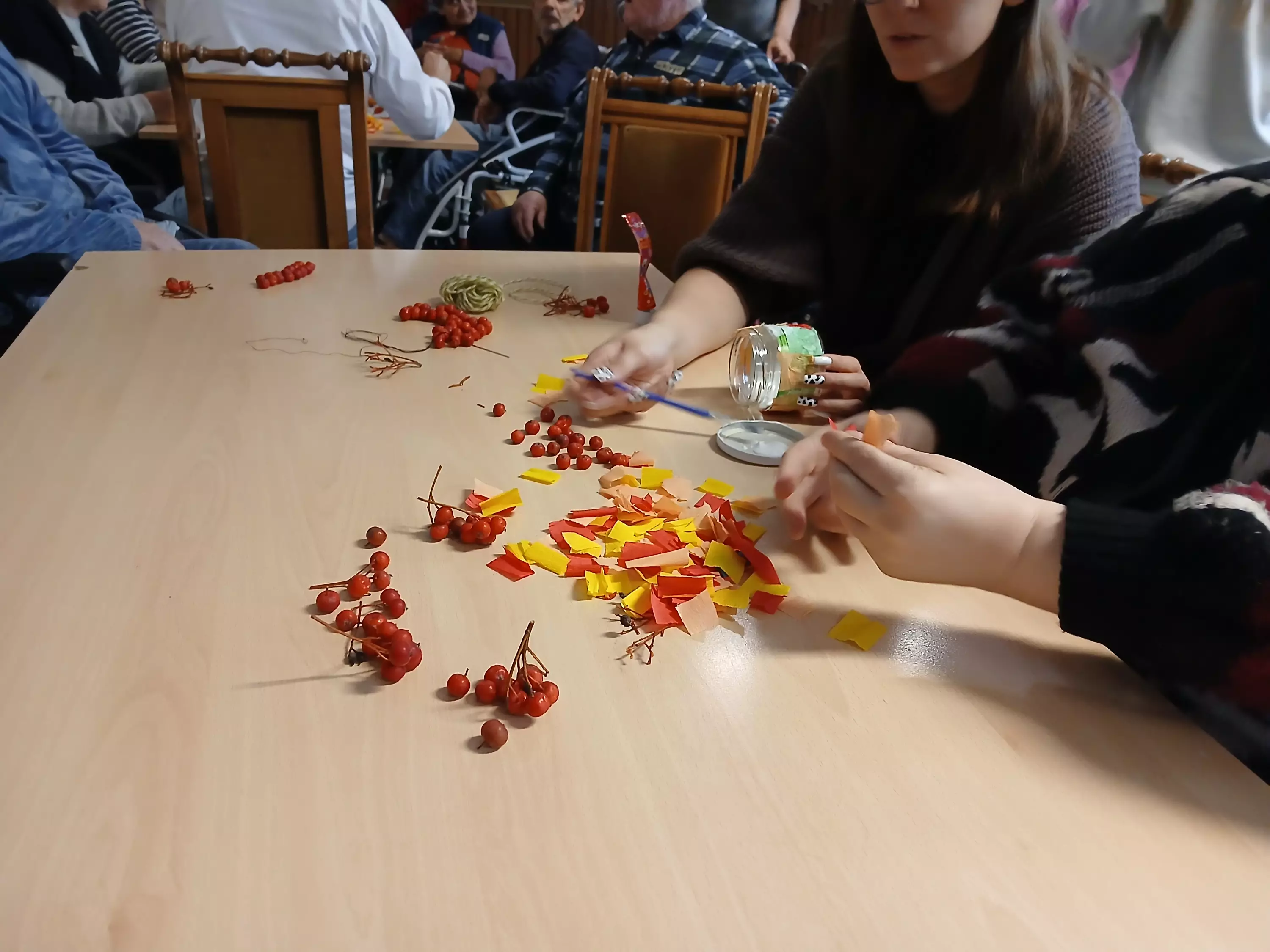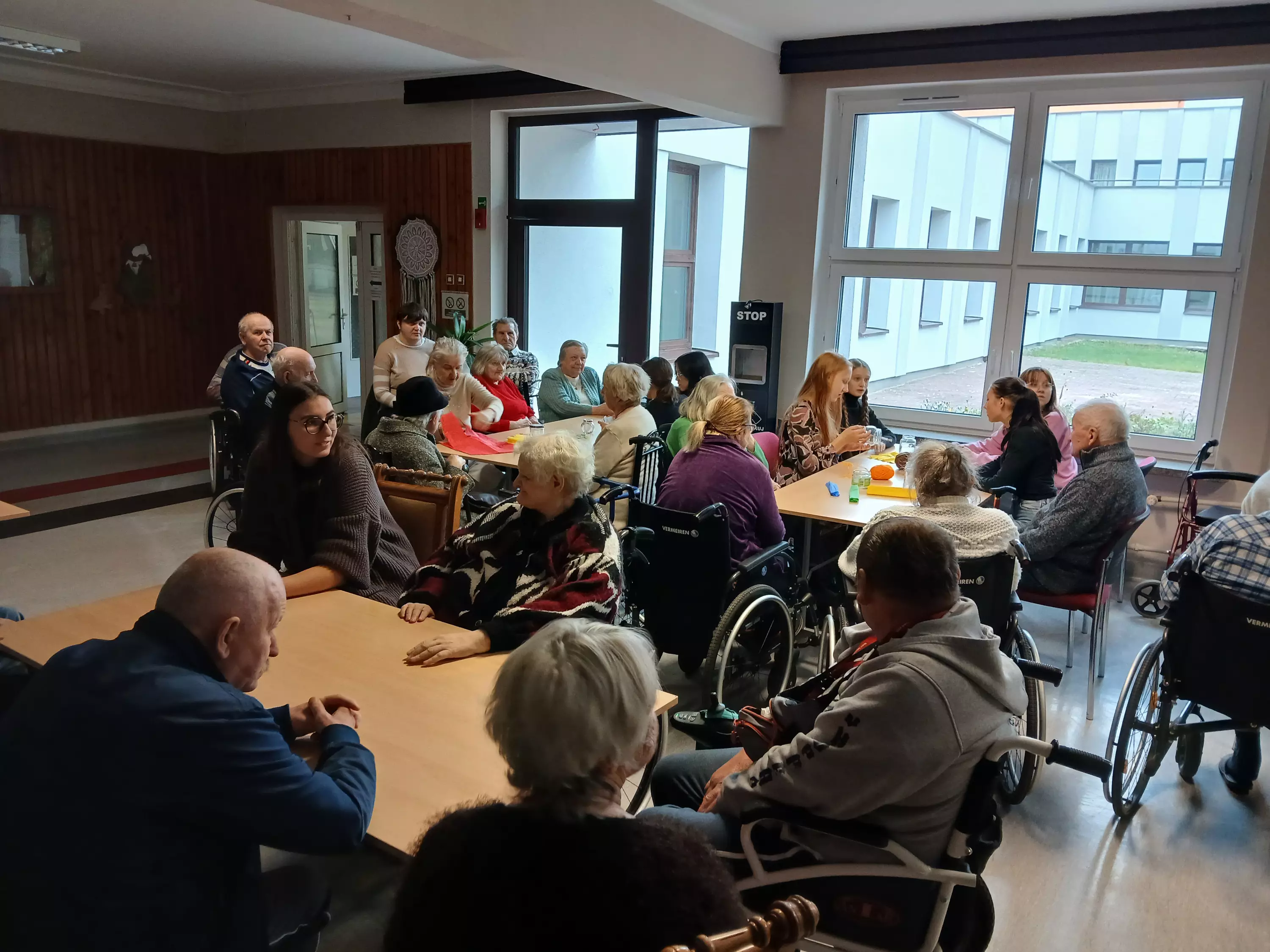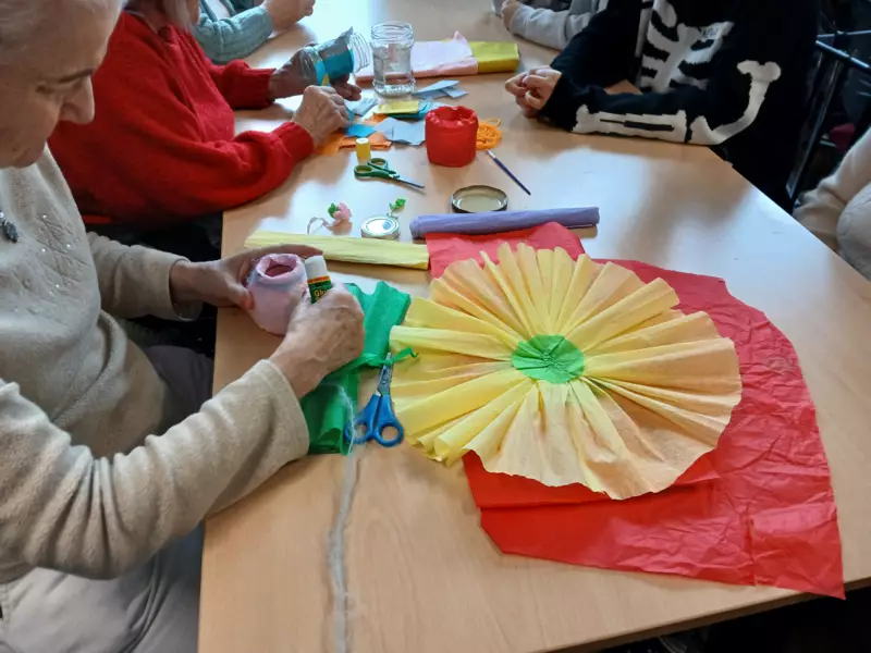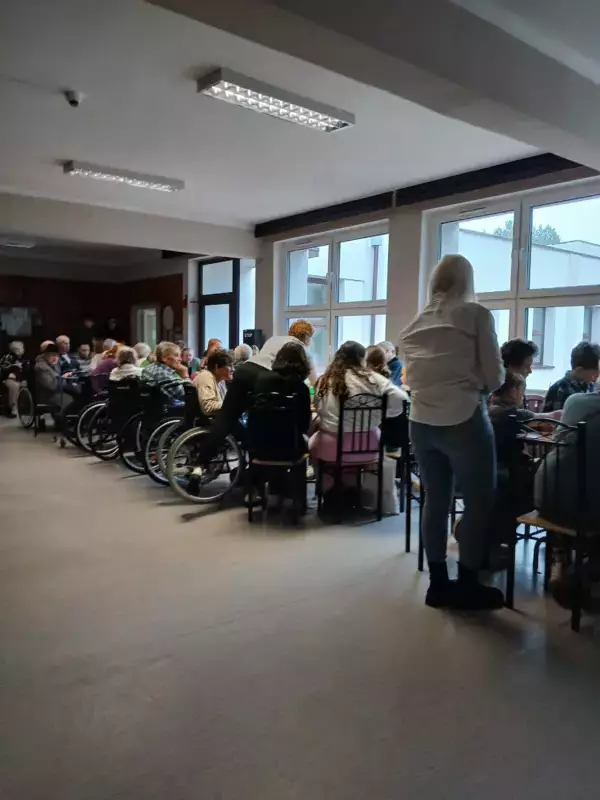 W dniu 9.11.2024r po raz kolejny odwiedziła nas młodzież ze szkoły Podstawowej nr 4 w Lublińcu. Młodzież i nauczyciele przynieśli ze sobą różnego rodzaju włóczki , kolorowy papier, bibułę oraz jarzębinę aby zrobić cos wspólnie i spędzić miło czas. Mieszkańcy byli zadowoleni i bardzo chętnie wykonywali ozdoby. Bardzo dziękujemy za zaangażowanie, prezenty i czekamy na kolejne odwiedziny.
