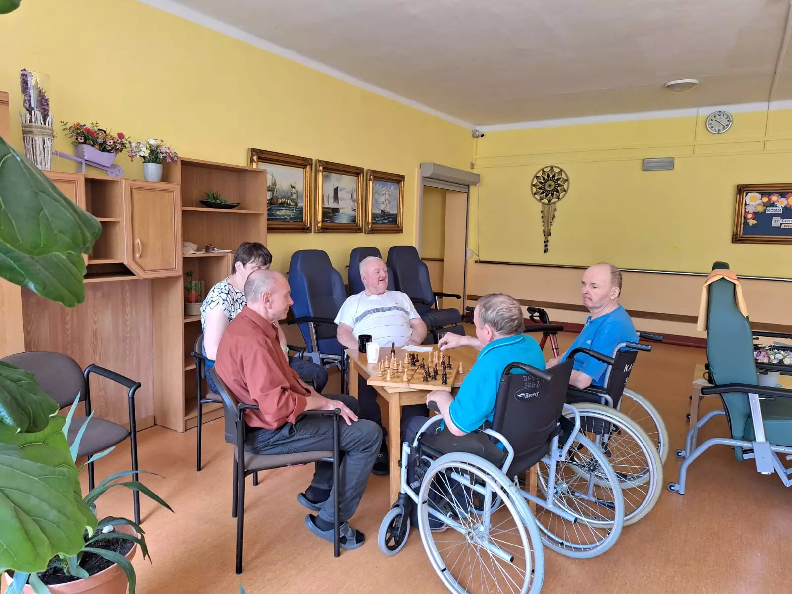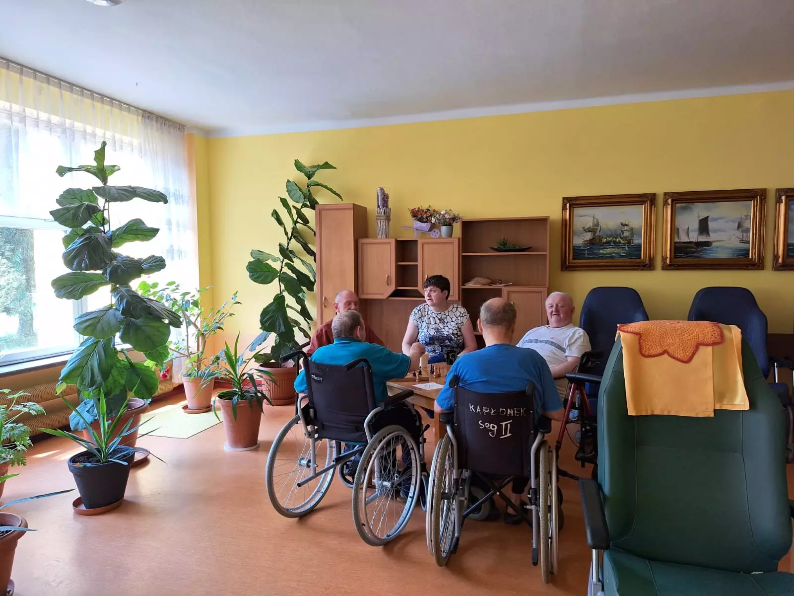 Z powodu tymczasowej awarii windy nasi podopieczni uczestniczą w zajęciach na parterze. Mieszkańcy chętnie uczestniczą w zajęciach. Gramy w gry planszowe, dużo dyskutujemy na tematy bieżące a przede wszystkim miło spędzamy czas.