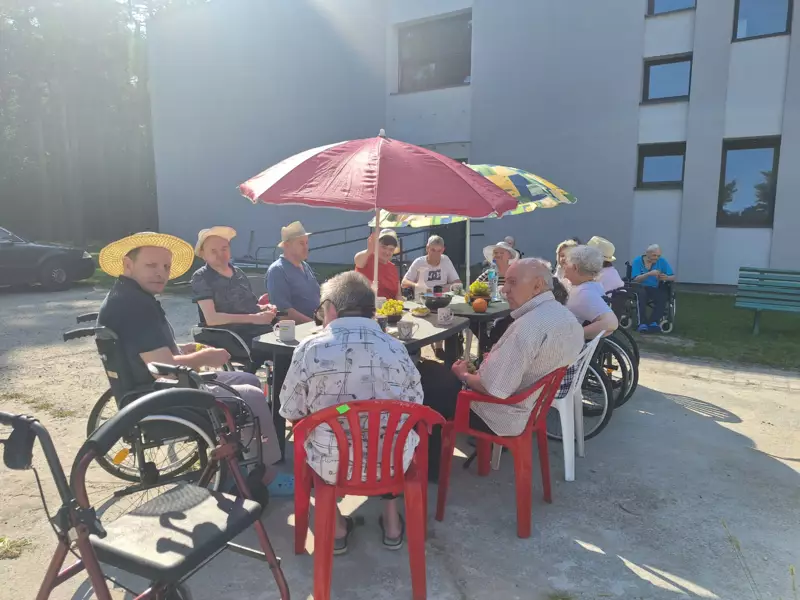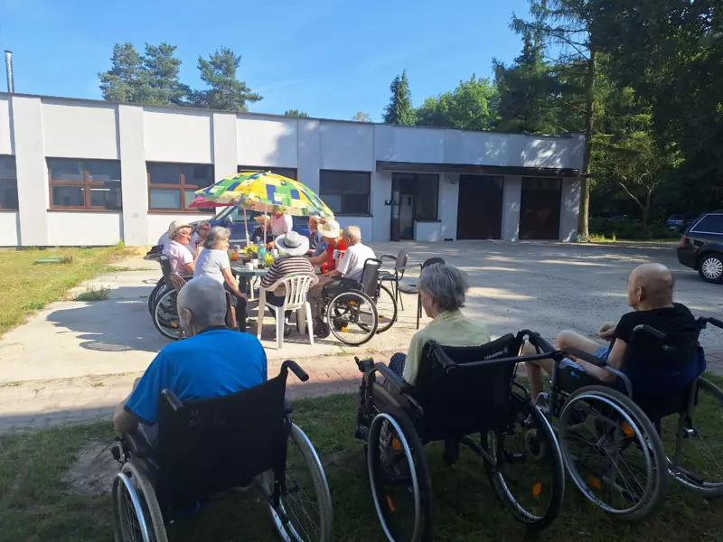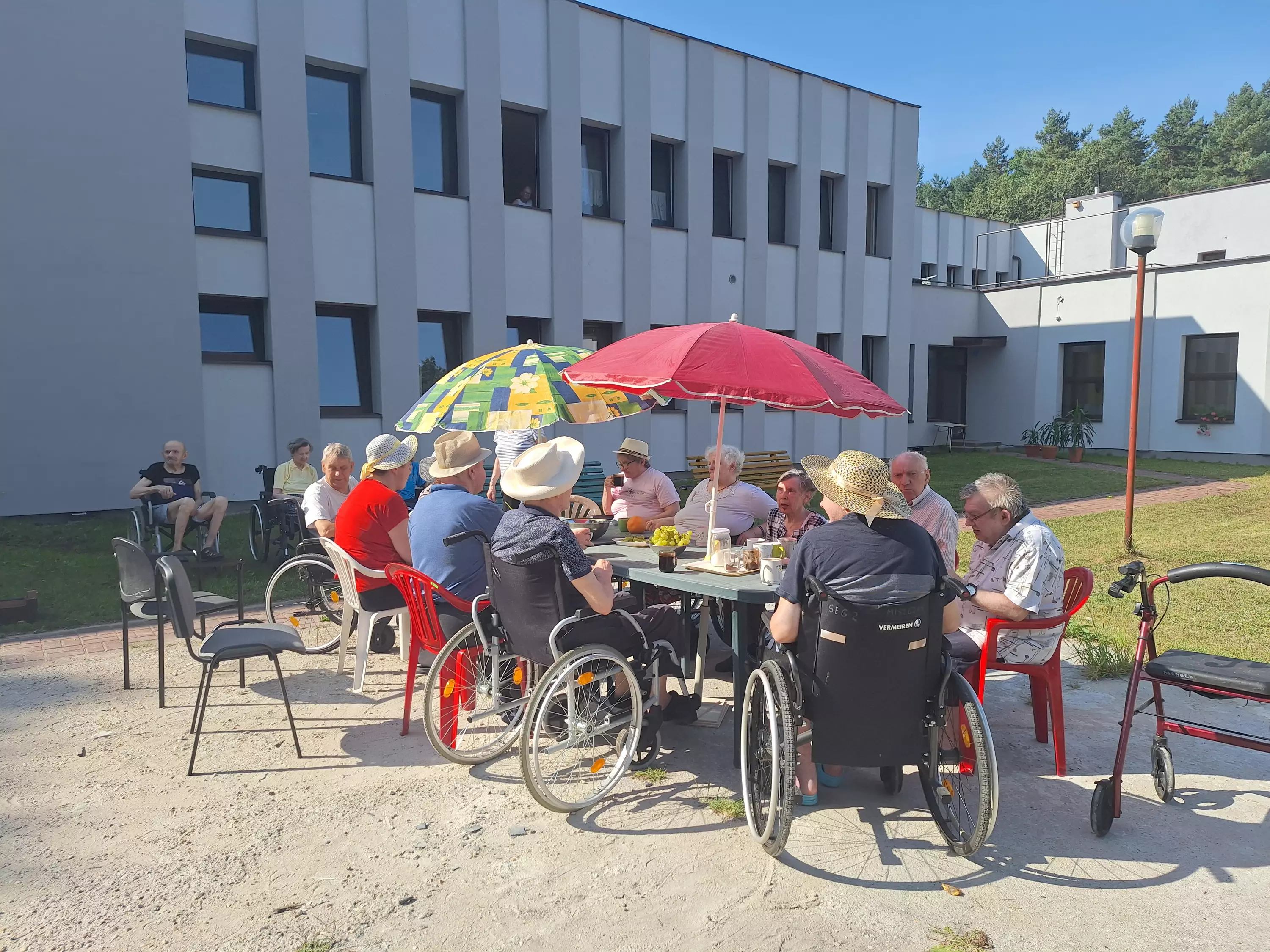 W dniu dzisiejszym nasza terapia zajęcia miała na dworze. Wszystkim się bardzo podobało. Była kawka, ,słodycze, muzyka i dobre humory.
