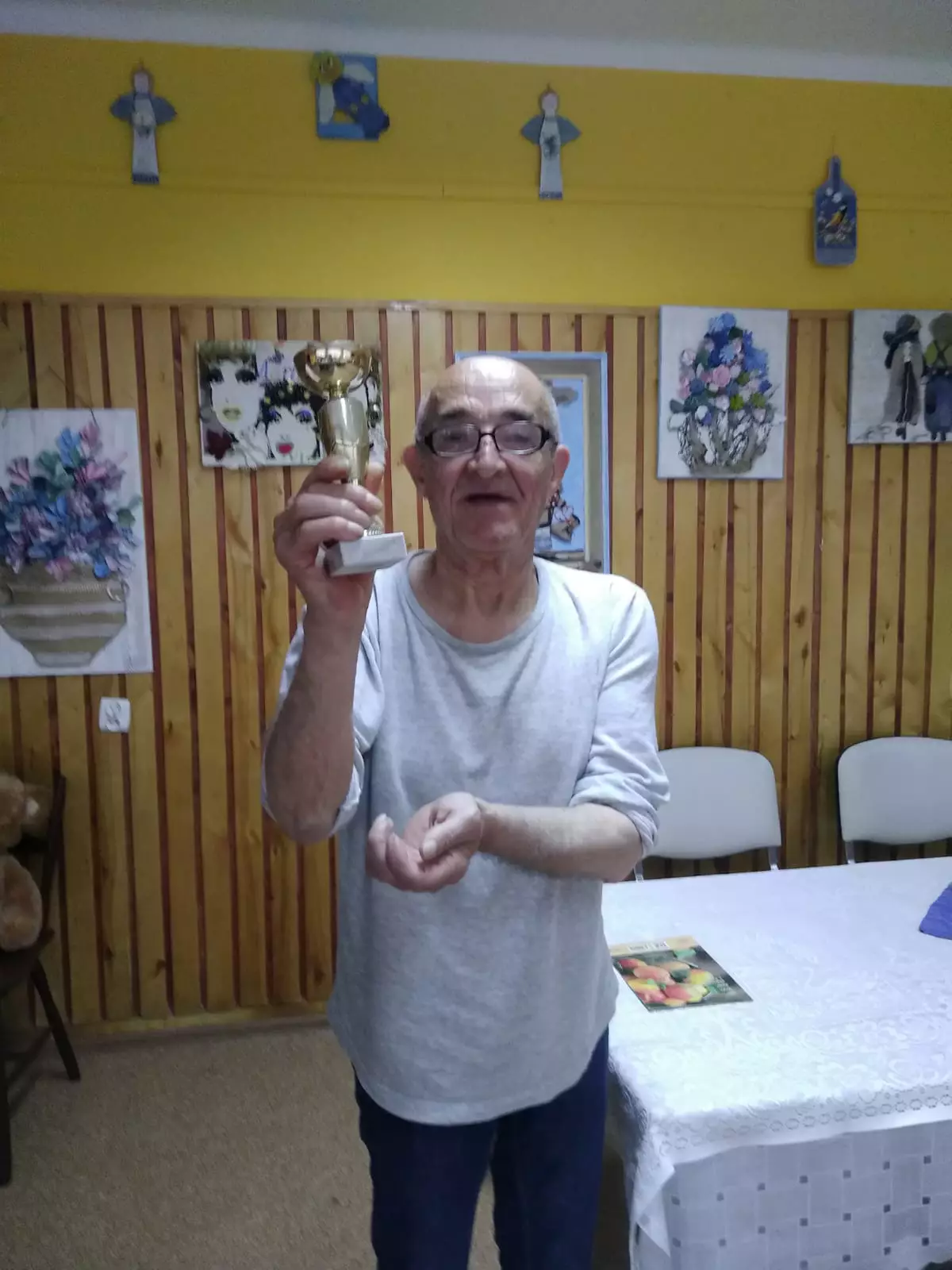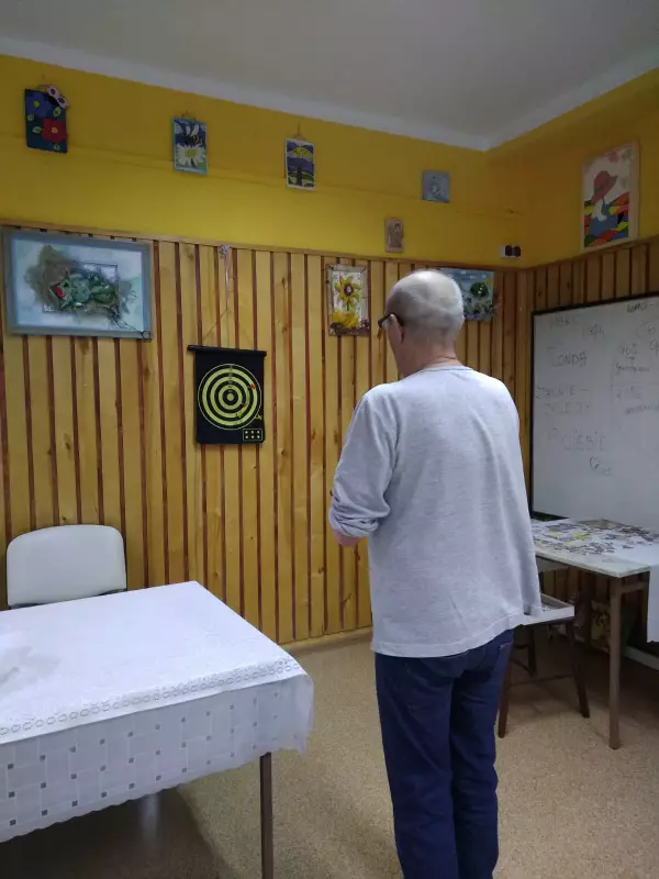 Jedną z naszych ulubionych gier to gra w rzutki. Gra przynosi nam wiele radości i emocje. W dzisiejszym turnieju wystartowały 4 osoby. Pierwsze miejsce zajął pan Sławek i w nagrodę otrzymał pamiątkowy puchar.