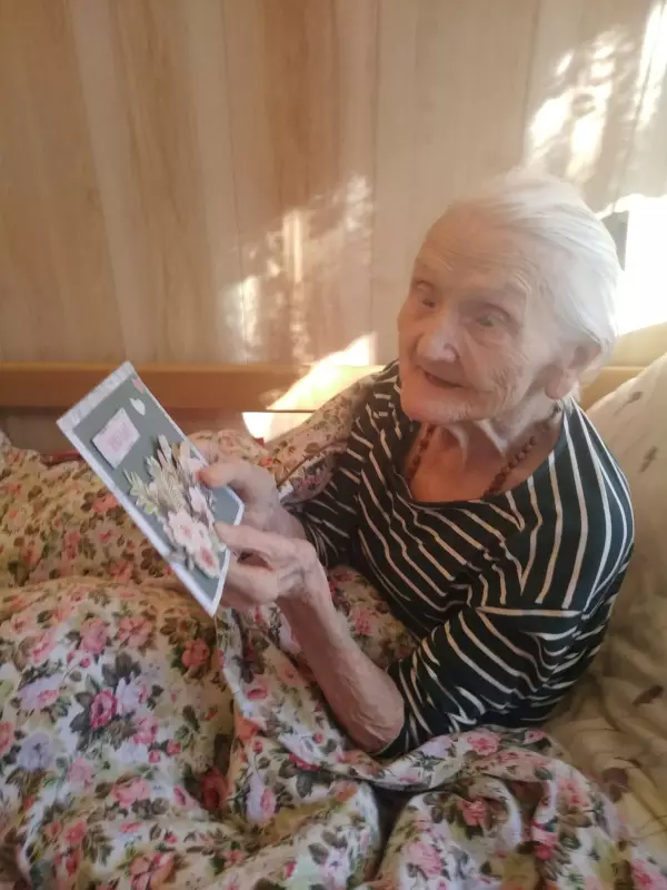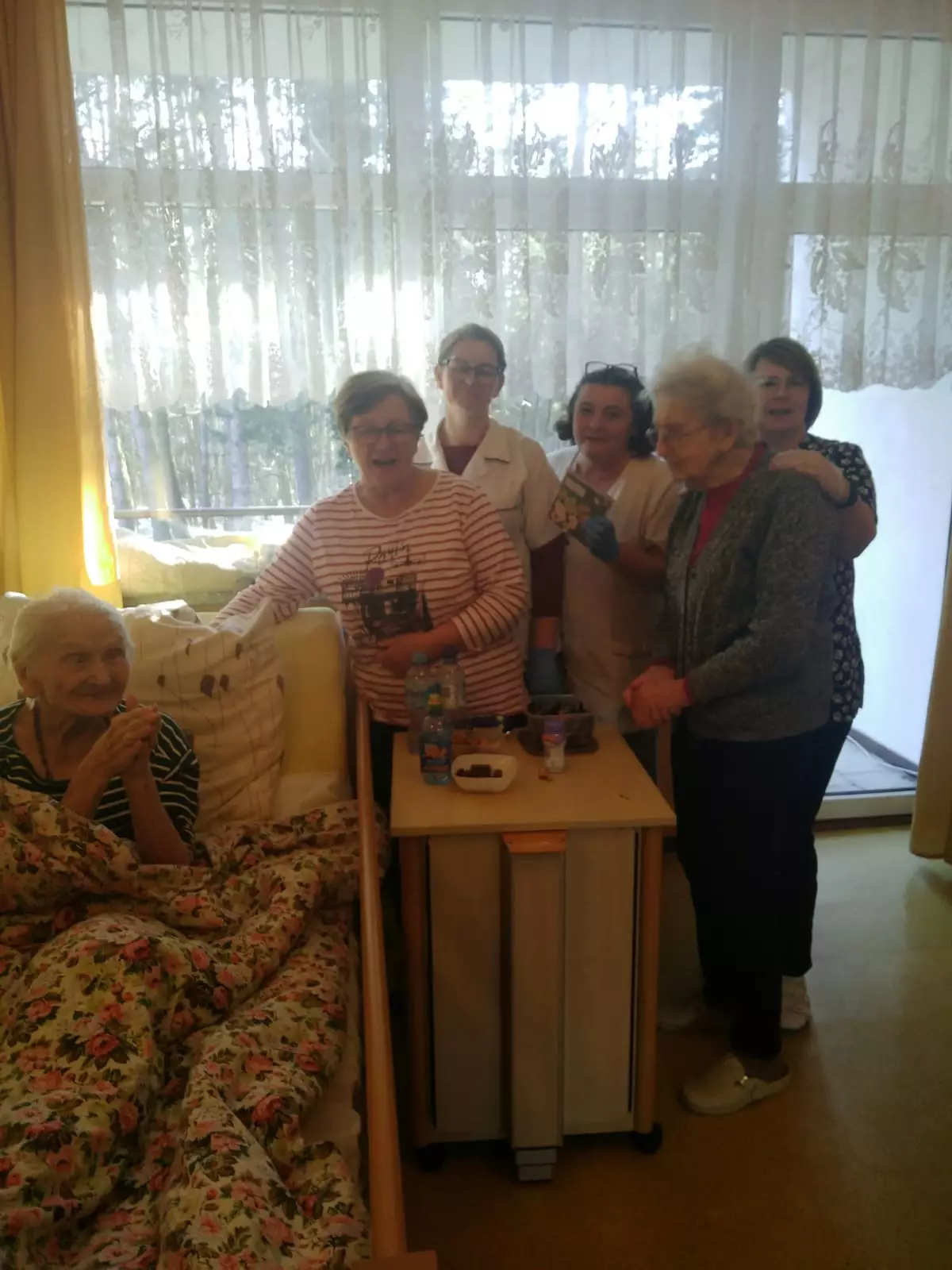 Mieszkanka seg.1 p.Bronisława obchodziła swoje… 99 urodziny. Jest w tej chwili najstarszą mieszkanką segmentu I naszego domu. Niestety p.Bronisława nie wychodzi już z łóżka więc cały personel stawił się by jubilatce złożyć najserdeczniejsze życzenia. Było też odśpiewane ,,Dwieście lat’’ bo ,,Sto lat’’ to za mało. Wręczono także okolicznościowe kartki. Solenizantka była niezwykle wzruszona i wdzięczna z a okazaną pamięć i serdeczność.