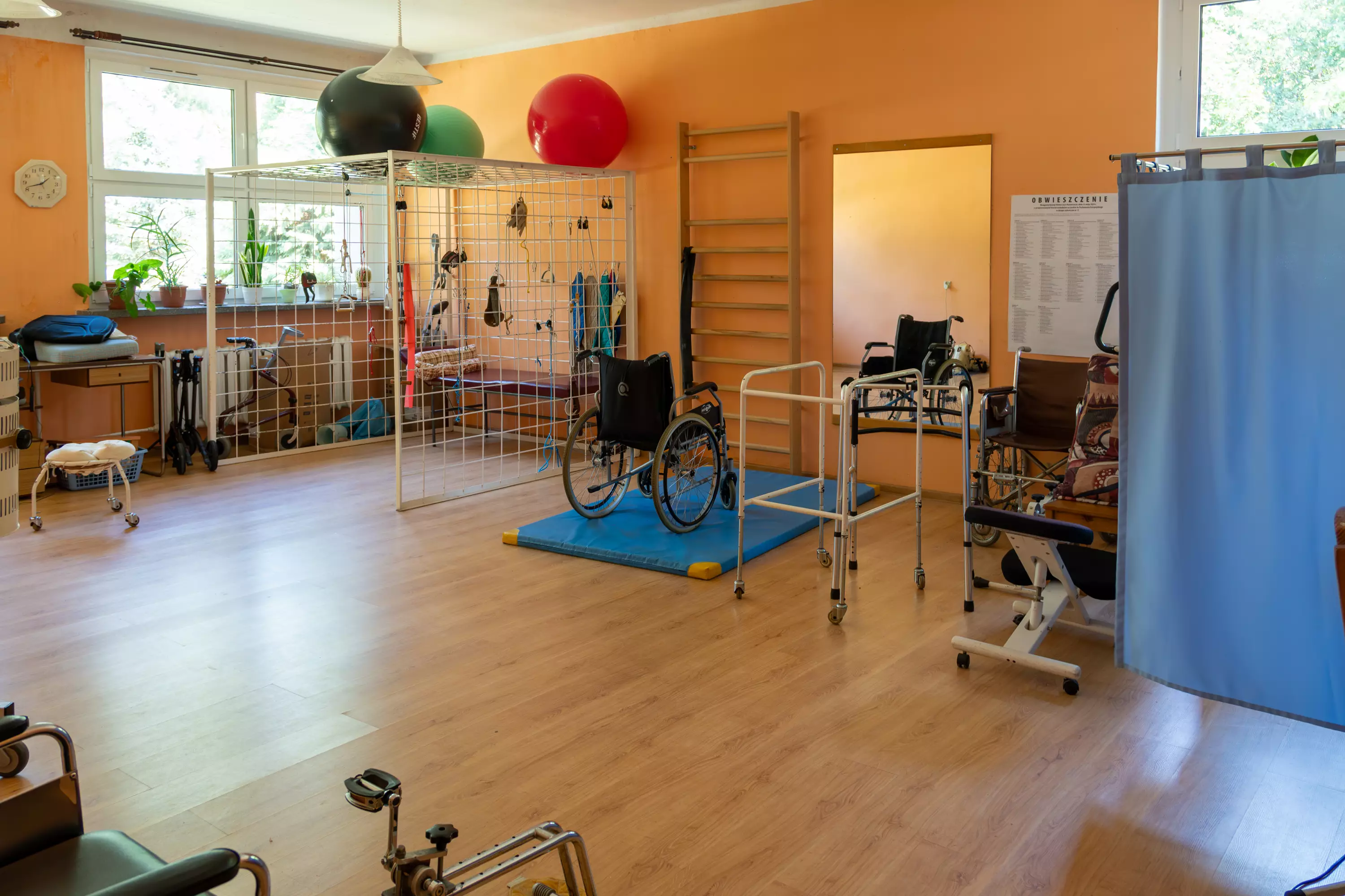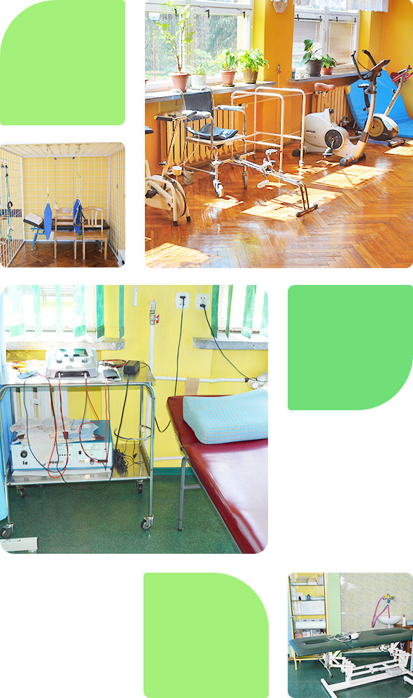 Rehabilitacyjne: Pracownicy rehabilitacji codziennie wykonują wiele zabiegów pozwalających zachować lepsze zdrowie. Dzięki nowoczesnemu sprzętowi rehabilitacyjnemu mogą skutecznie pomagać w tym zakresie. Mieszkańcy mają do dyspozycji salę gimnastyczną, wyposażoną między innymi w rowerki stacjonarne, rotorki ręczne i mechaniczne, UGUL. Oprócz tego można skorzystać z takich zabiegów jak: laseroterapia, światłolecznictwo, magnoterapia czy masaże.