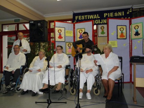 V Mini Festiwal Pieśni i Piosenki Religijnej Dnia 23 października 2014 roku w Naszym Domu odbył się V Mini Festiwal Pieśni i Piosenki Religijnej. Zespoły i soliści z placówek pomocowych naszego miasta i zaprzyjaźnionych Domów Pomocy Społecznej prezentowali umiejętności wokalne, zaangażowanie i co wydaje się najcenniejsze pokonanie własnych słabości. Bo przecież występ przed publicznością nie jest rzeczą łatwą, zwłaszcza gdy jest to rywalizacja, choćby najszlachetniejsza i w formie zabawowej. Każdy uczestnik wykonywał w części konkursowej dwa utwory oceniane przez jurorów. Słuchacze i jurorzy mieli zatem możliwość wysłuchania 18 różnych popisów śpiewaczych i w ocenie wszystkich, wybranie tego jednego nie było rzeczą prostą. Ale z tym problemem musieli zmierzyć się jurorzy, którzy (jak wiadomo z podsłuchanych rozmów) spierali się gorąco. Werdykt zapadł po długiej naradzie a zwycięzcą tegorocznej edycji Mini Festiwalu został Dom Pomocy Społecznej z Bytomia. Nieoczekiwaną atrakcją Festiwalu był występ wszystkich opiekunów zespołów a na zakończenie całości popis jurorów. Laureatowi i wszystkim wykonawcom serdecznie i gorąco gratulujemy i już teraz zapraszamy do udziału w przyszłym roku. Warto w tym miejscu przedstawić wszystkich uczestników Festiwalu a byli nimi: DPS „Pod Dębem" z Dąbrowy Górniczej, DPS „Kombatant" z Bytomia, DPS „Przyjaźń" z Tarnowskich Gór, DPS dla Kombatantów z Opola, DPS z Częstochowy, DPS Kochcicka z Lublińca, Środowiskowy Dom Samopomocy z Lublińca, DPS „Zameczek" z Lublińca i DPS „Dom Kombatanta" z Lublińca.