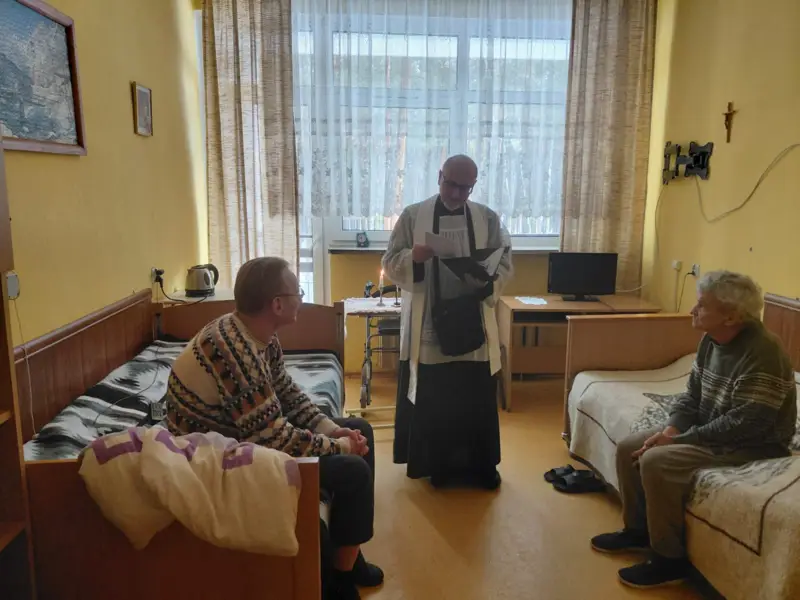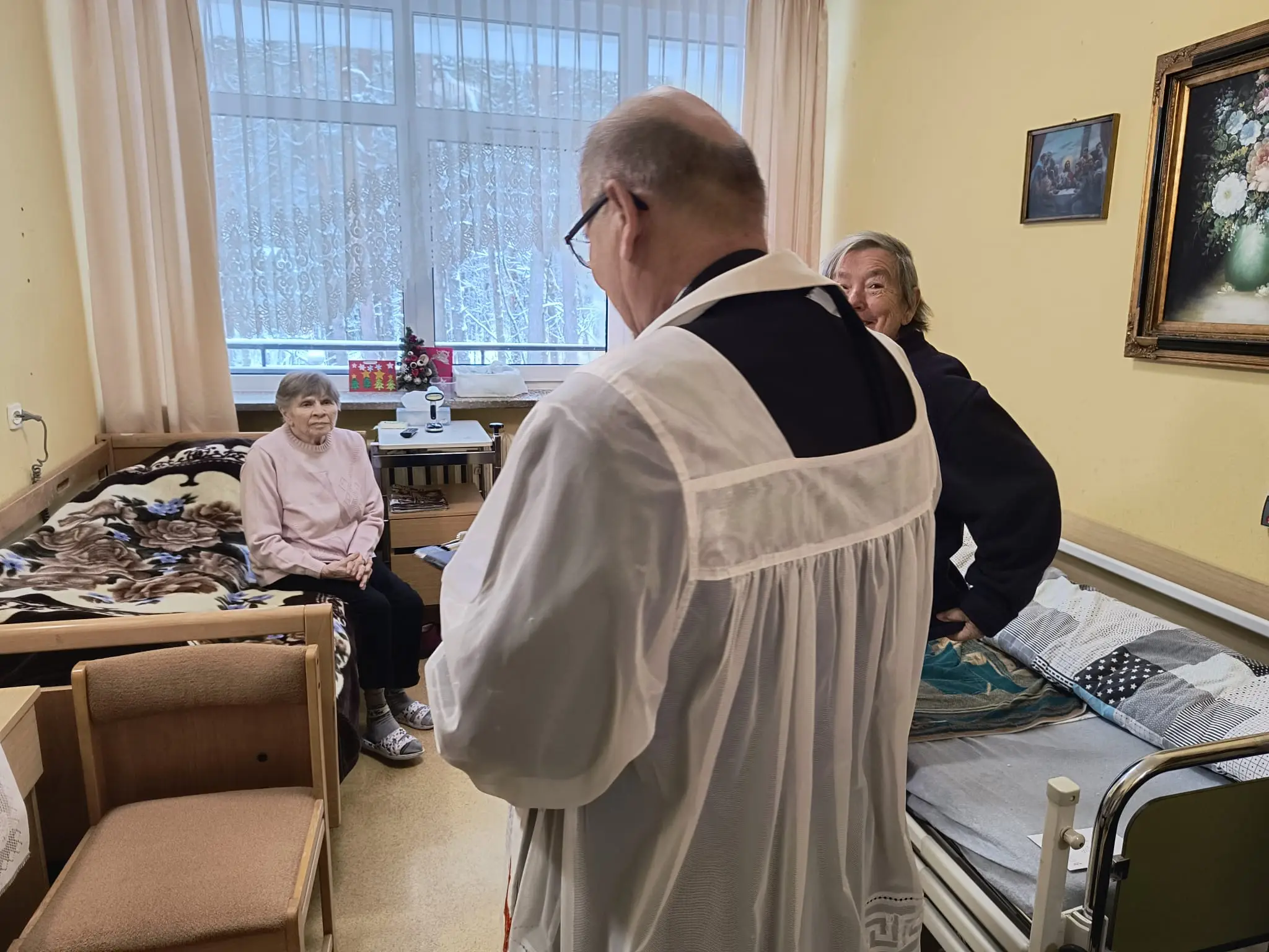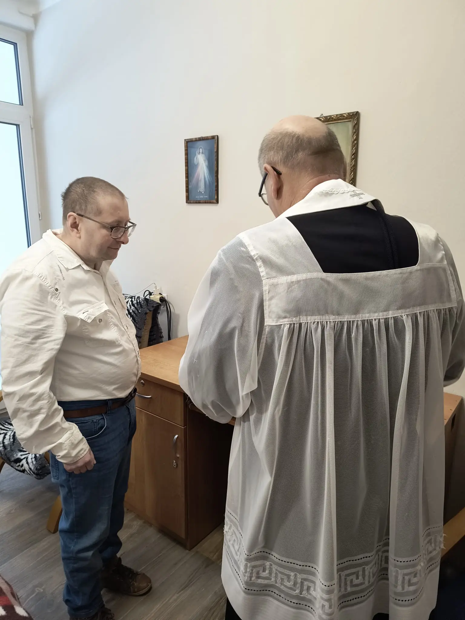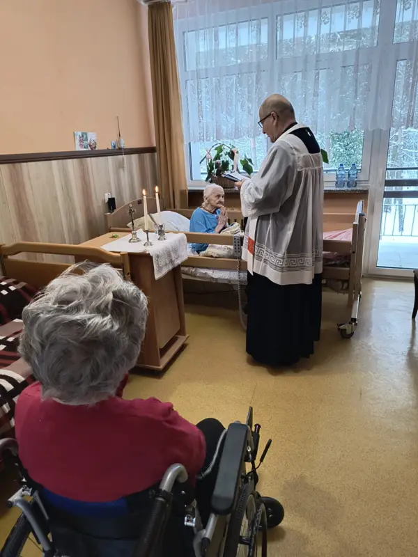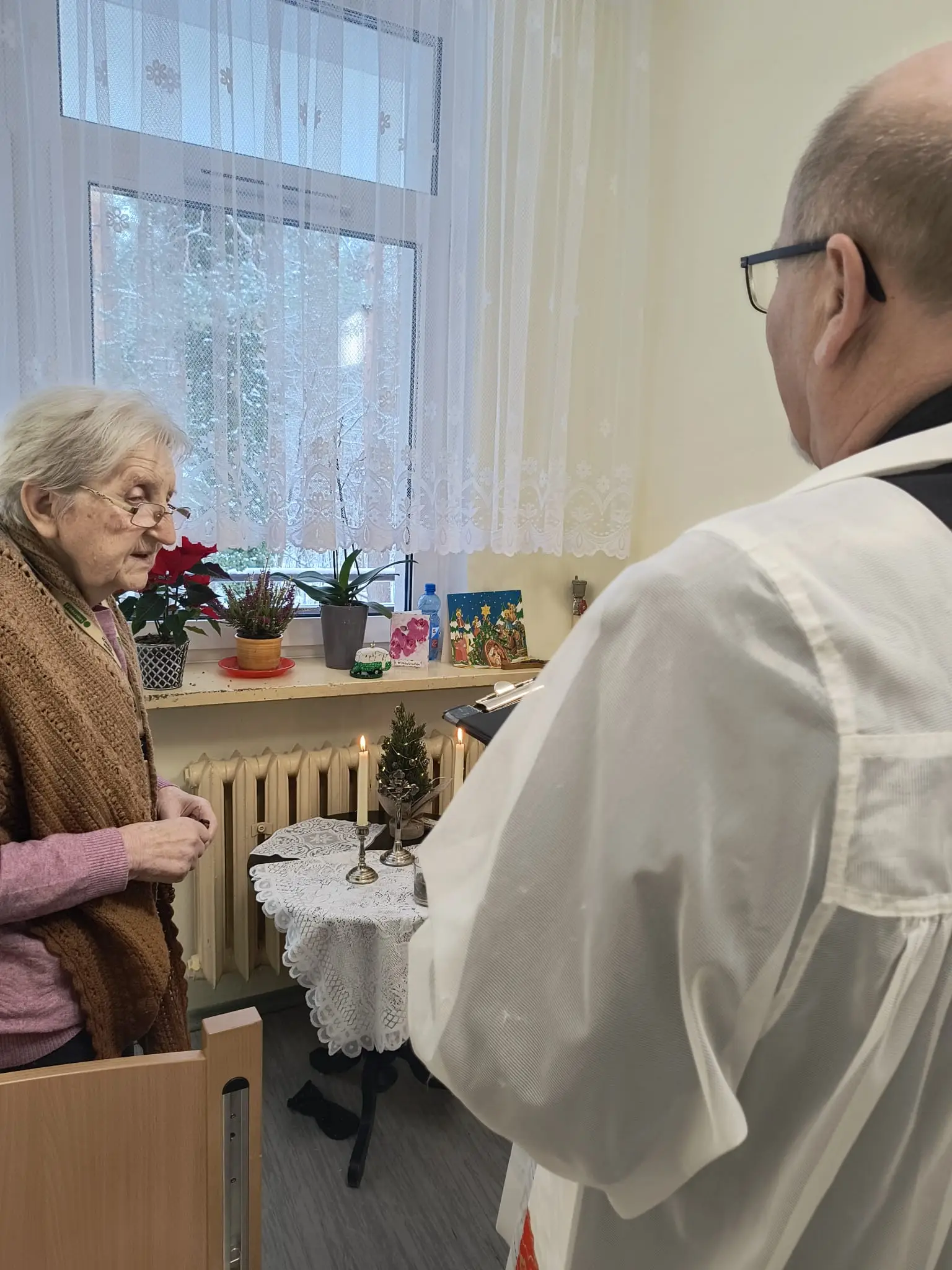 W ubiegłym tygodniu, od poniedziałku do czwartku, w DPS Dom Kombatanta odbyła się wizyta duszpasterska – tradycyjna kolęda. Wizytę przeprowadził ojciec Jan Wnuk, który odwiedzał mieszkańców w ich pokojach.