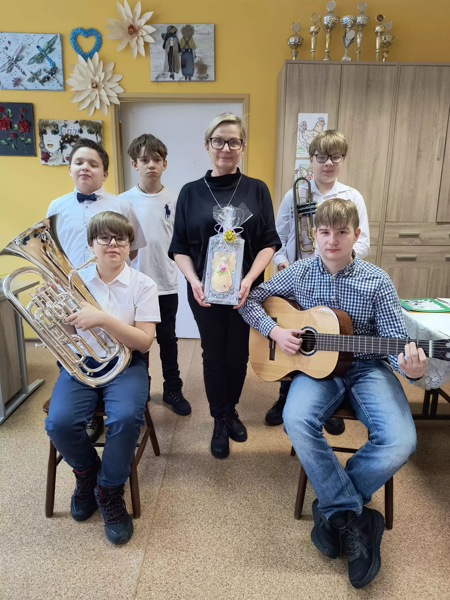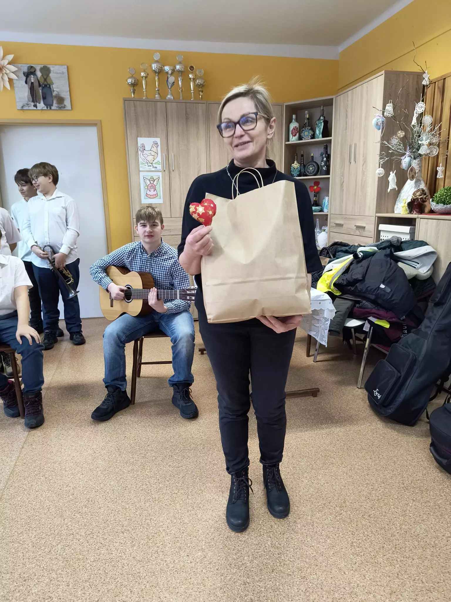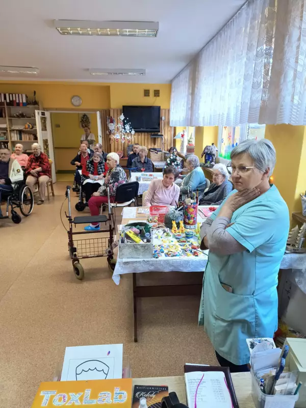 22.01.2024r odwiedziła nas grupa uczniów- wolontariuszy z SP nr.1. Dzieci przedstawiły dla naszych mieszkańców program artystyczny z okazji Dnia Babci i Dziadka. Zaprezentowali kilka kolęd przy akompaniamencie gitary, trąbki i eufonium. Do śpiewu włączyliśmy się wszyscy. Ponadto usłyszeliśmy piękne wiersze z podziękowaniami i życzeniami dla babć i dziadków. Spotkanie było niezwykle radosne i przebiegało w bardzo ciepłej atmosferze. Zostaliśmy obdarowani własnoręcznie wykonanymi serduszkami. Dzieci zapowiedziały się z następną wizytą. Jesteśmy wdzięczni za podjęty wysiłek aby sprawić radość naszym mieszkańcom.