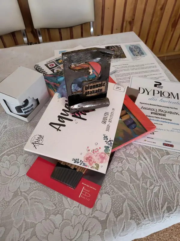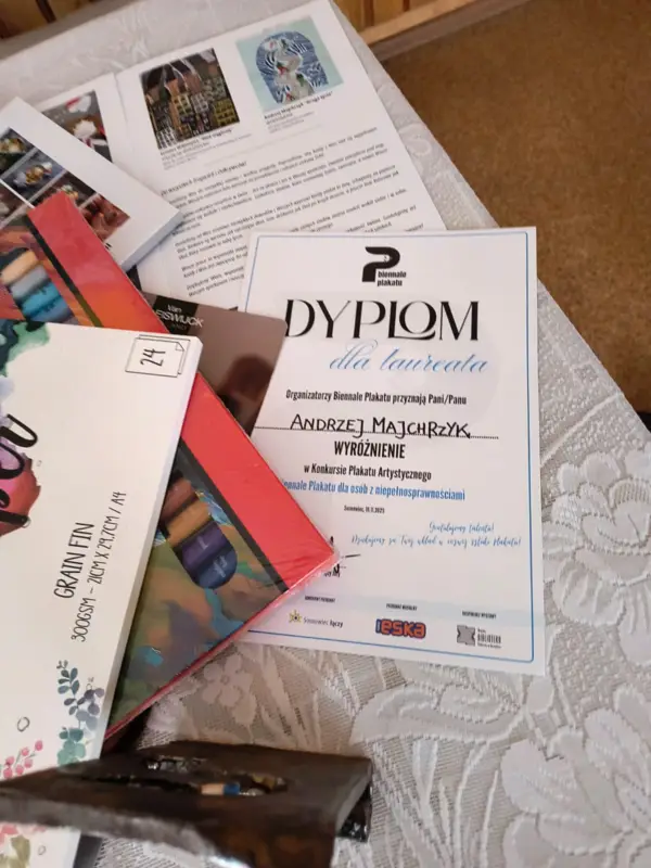 Dnia 18 listopada mieszkaniec naszego Domu, pan Andrzej, odebrał w Sosnowcu wyróżnienie w konkursie plastycznym za plakat pt. „Ślad”.