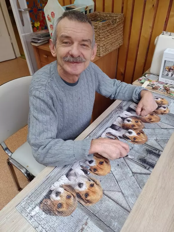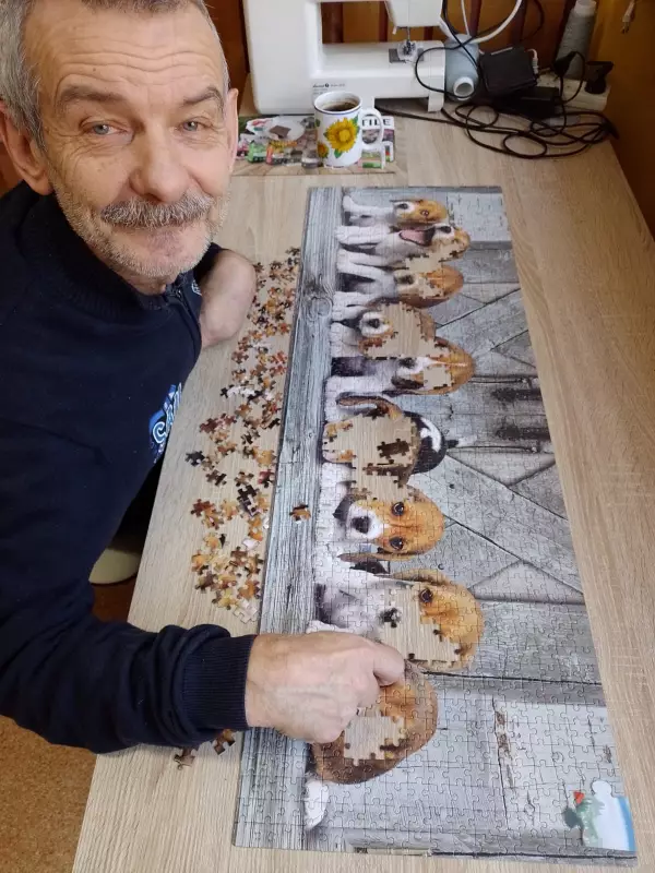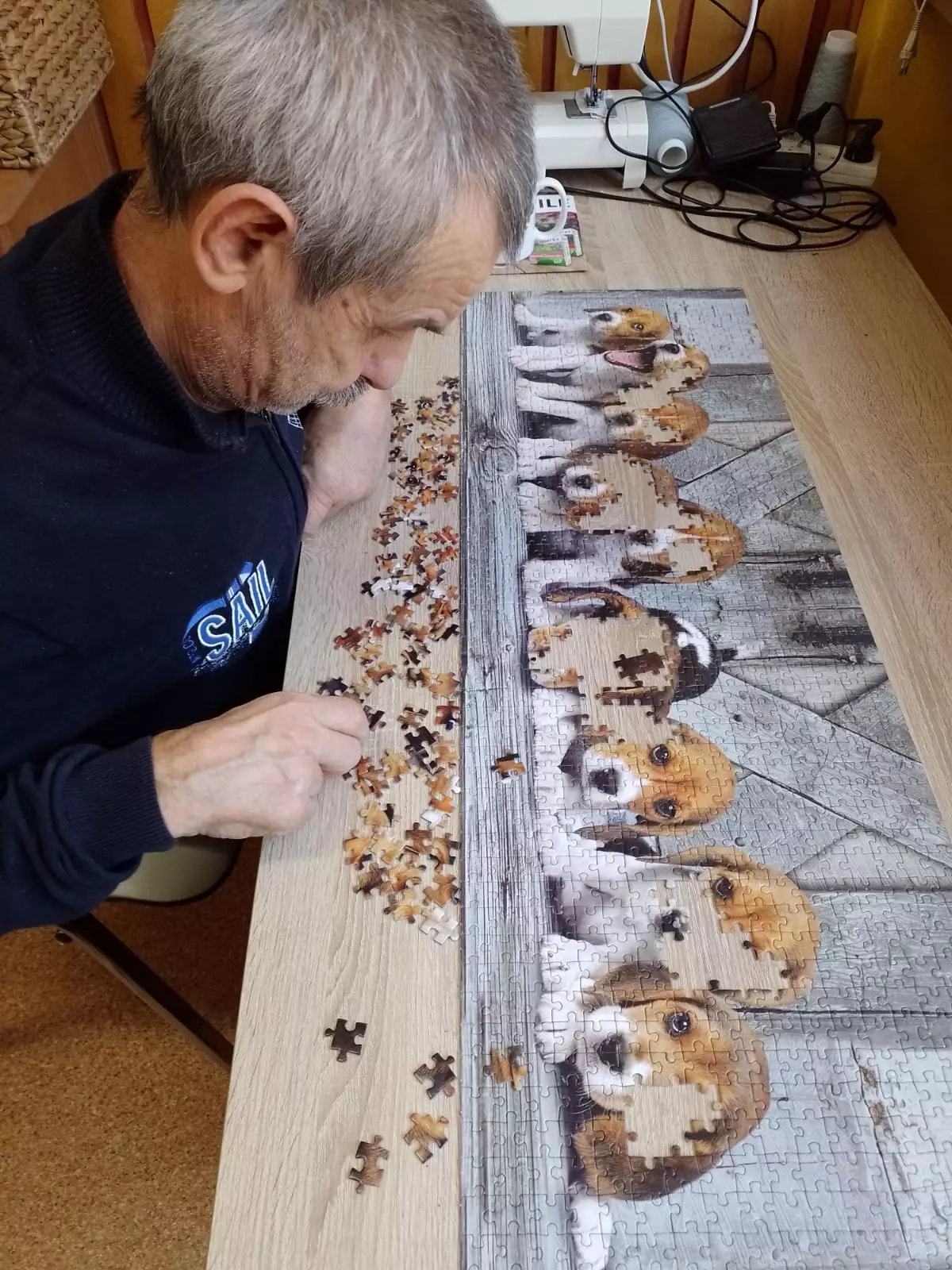 Układanie puzzli uczy nas przede wszystkim koncentracji, a także skupienia się na jednej. Pozwala nam to wyciszyć się odstresować i zapomnieć o otaczających nas problemach. Puzzle wpływają bardzo korzystnie na naszą pamięć wzrokową i uczą logicznego myślenia. Nie lada wyzwania podjął się nasz mieszkaniec p. Edward decydując się na ułożenie obrazu składającego się z 1000 elementów. Wykazał się morzem cierpliwości i spokoju, ale warto było. Jest wielka satysfakcja z podjętego trudu
