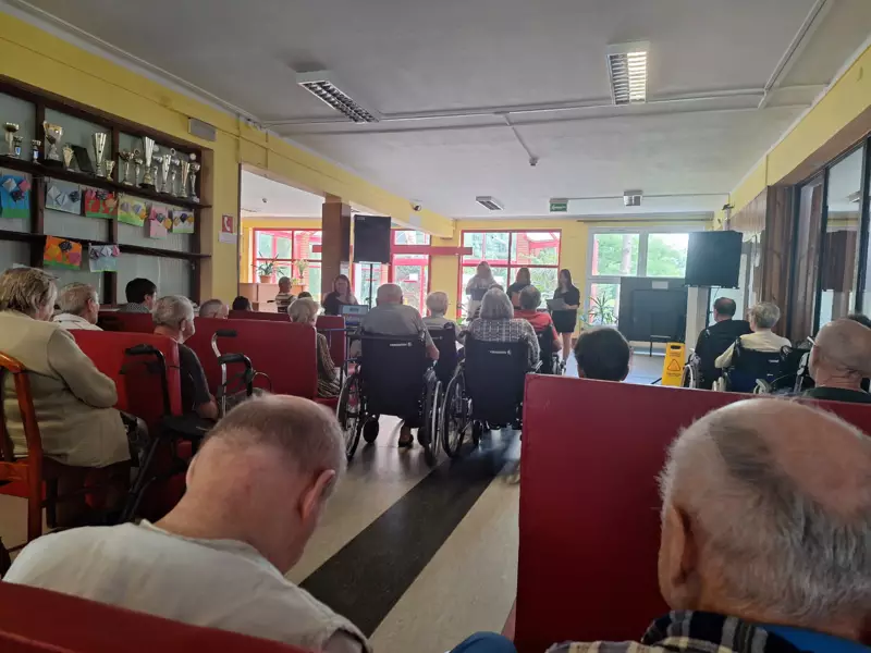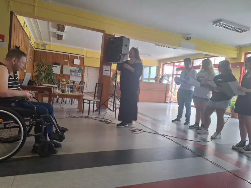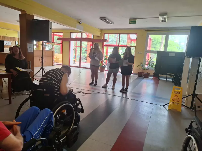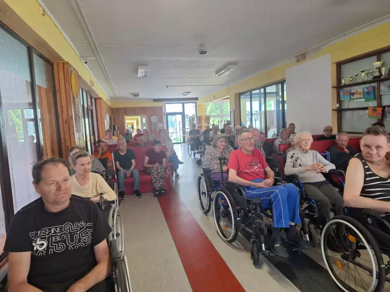 W dniu 25.06.2024r odwiedzili nas uczniowie wraz z nauczycielem z Zespołu Szkół Ogólnokształcąco-Technicznych w Lublińcu. Młodzież zaprezentowała nam kilka piosenek patriotycznych oraz piosenki o klimacie letnim. Jest nam bardzo miło że mimo wakacji znaleźli się uczniowie, którzy chętnie przyszli do naszego Domu aby umilić naszym podopiecznym czas. Dziękujemy za odwiedziny i czekamy na kolejne spotkanie.